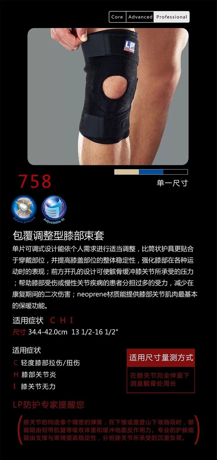 LP护具 包覆调整型膝部束套 LP758 篮球羽毛球登山护膝
