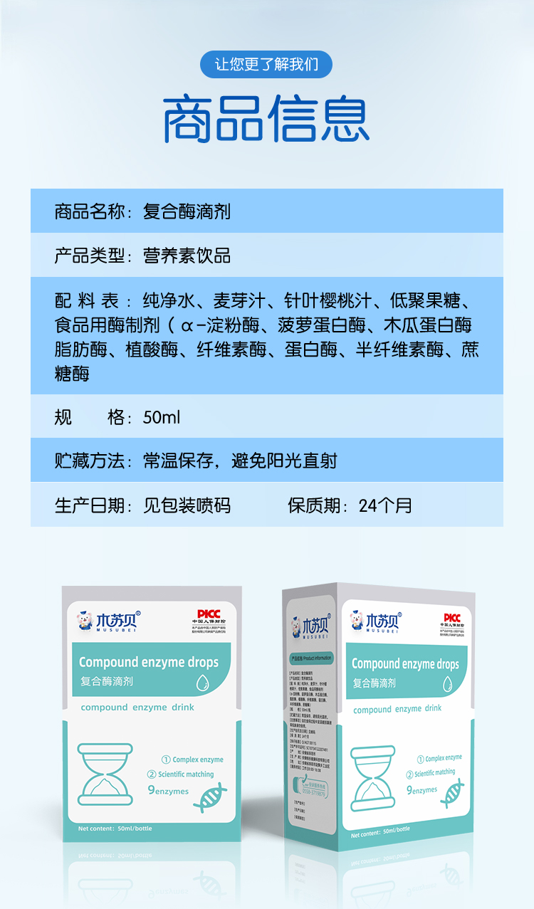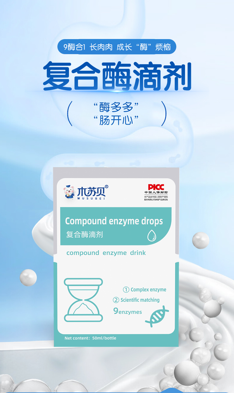 木苏贝复合酶滴剂 多种复合消化酶制剂 宝宝儿童综合蛋白酶淀粉酶50ml 高含量九种酶