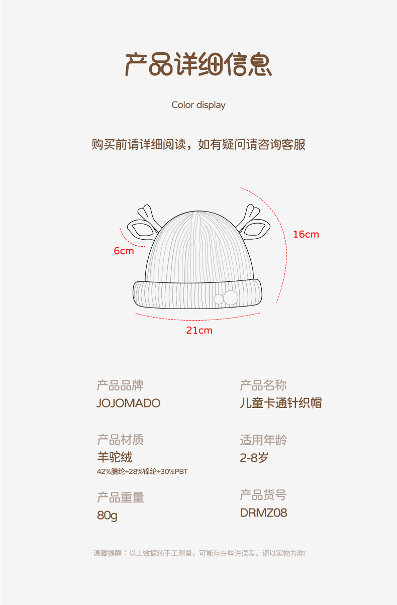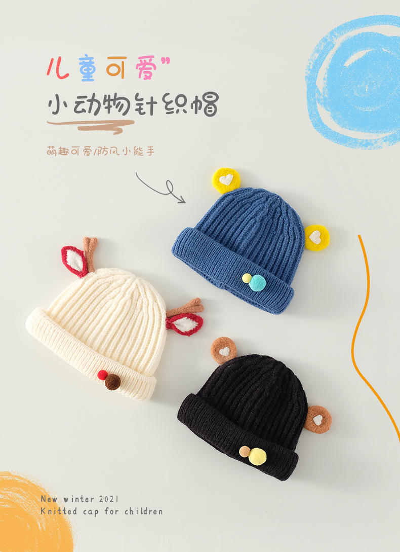 【甄选羊驼绒材质 防风小能手】儿童帽子韩国秋冬新款可爱宝宝瓜皮帽超萌保暖毛线针织帽子