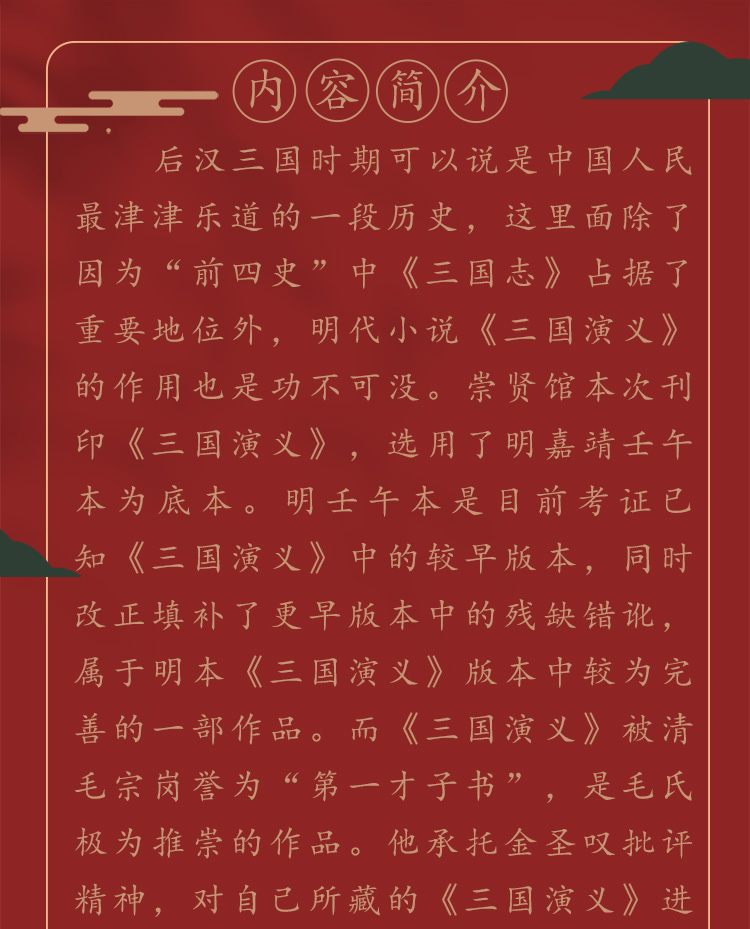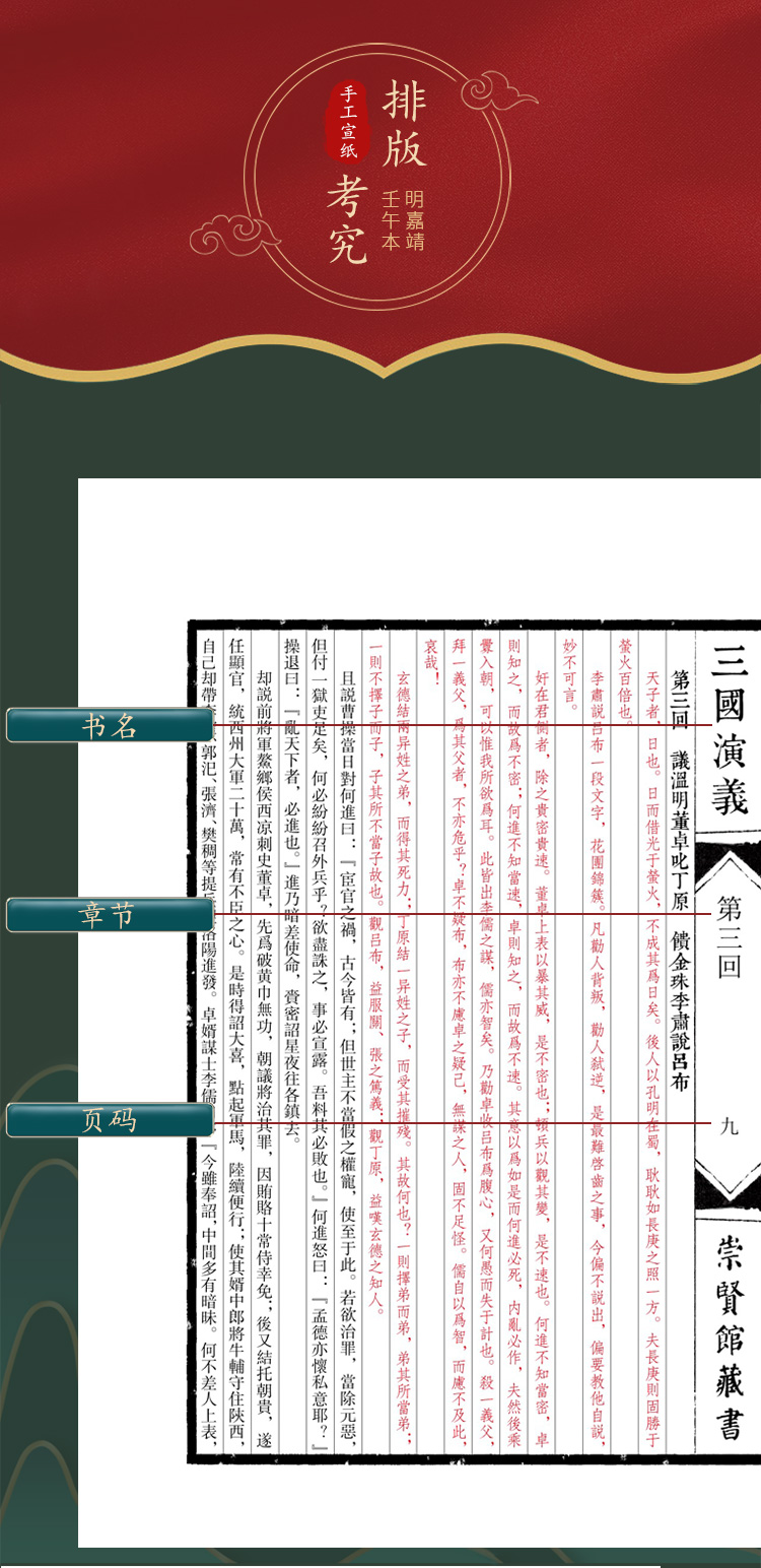 《三国演义》(一函八册手工宣纸线装)崇贤馆藏书
