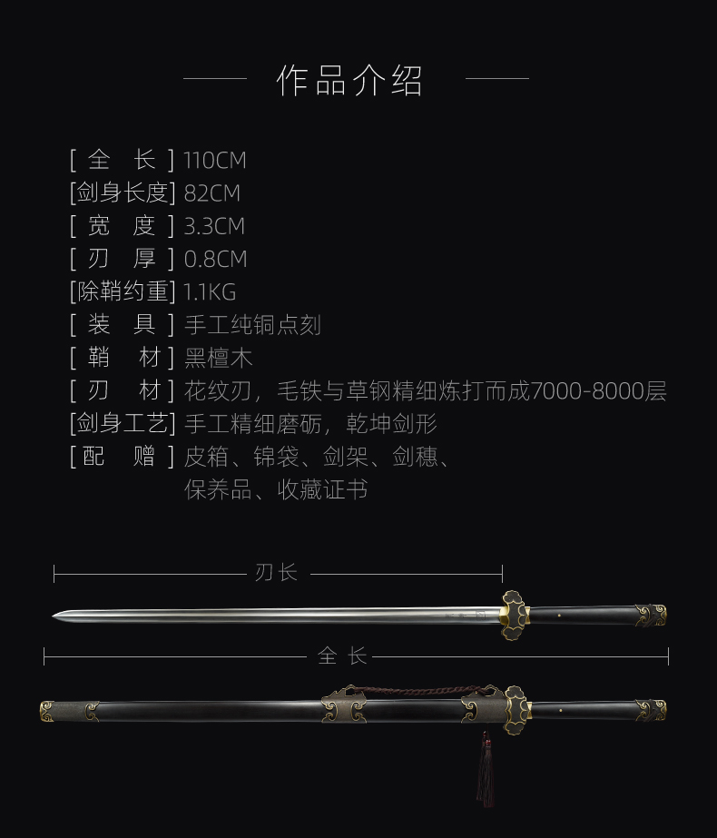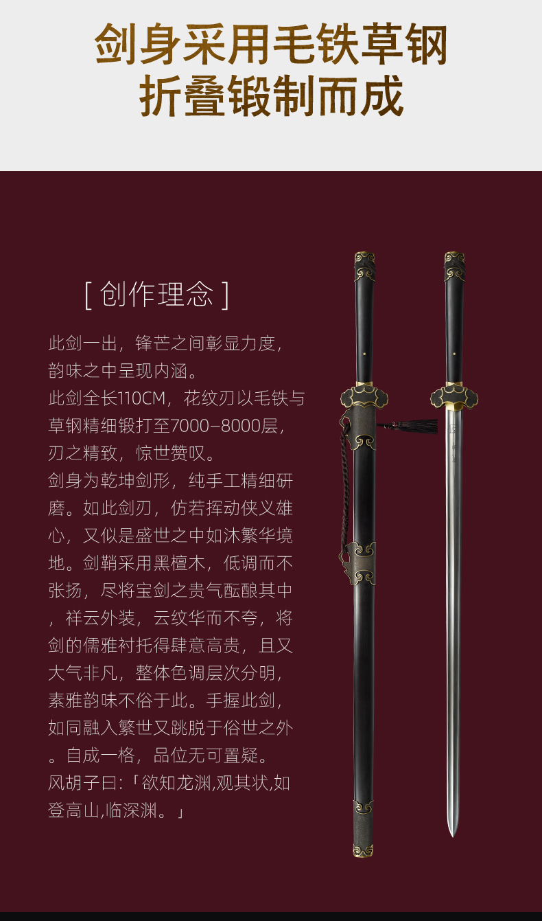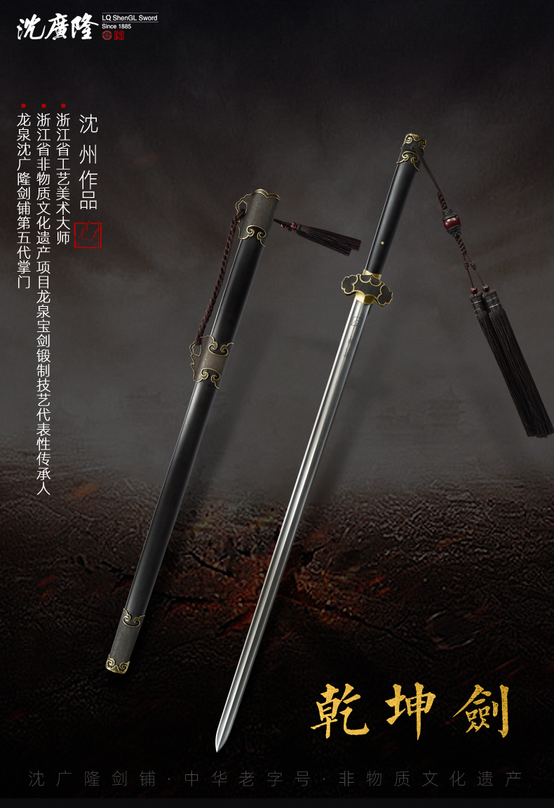 乾坤剑 沈州作品 沈广隆剑铺 龙泉沈广隆宝剑 手工传统收藏剑 未开刃 sgl-2006
