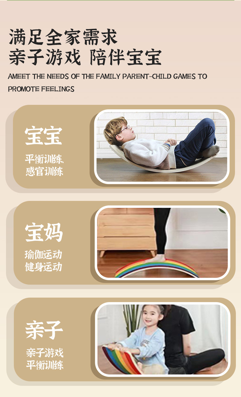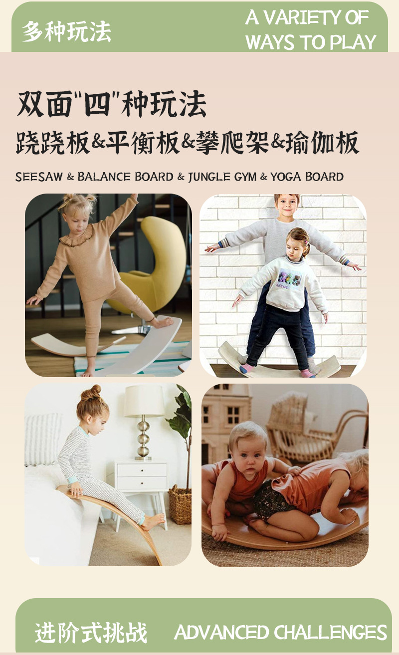 【“四”种玩法 多色可选】儿童感统训练平衡板益智运动木质跷跷板瑜伽宝宝聪明板玩具