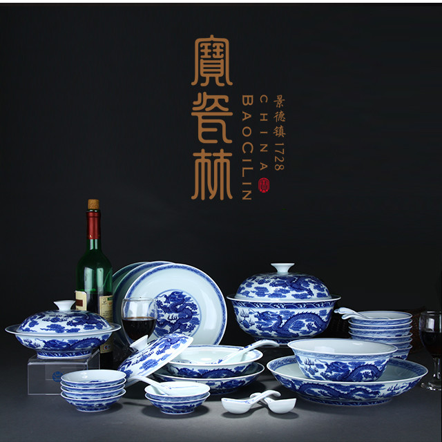 【宝瓷林】手绘青花龙纹28头餐具(定制产品)