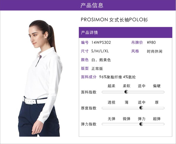 - PROSIMON高尔夫服饰,旗下有高尔夫运动系列、好动衬衫系列、色彩选制系列丰富的商品线。