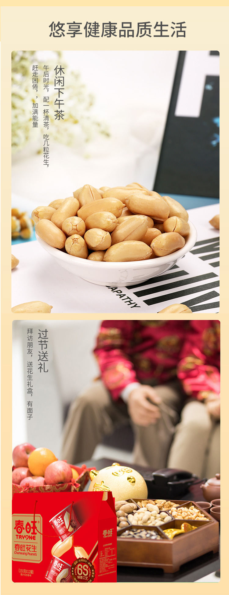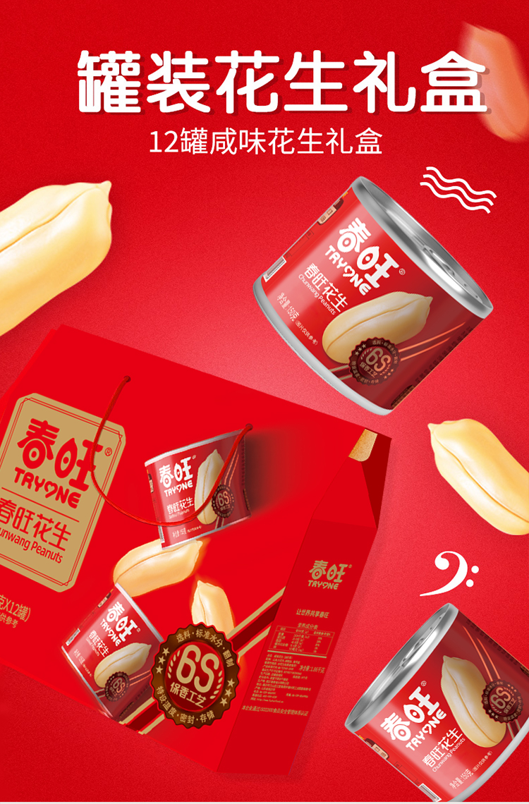 春旺花生坚果礼盒 山东淮盐花生罐装零食炒货12罐无添加干果