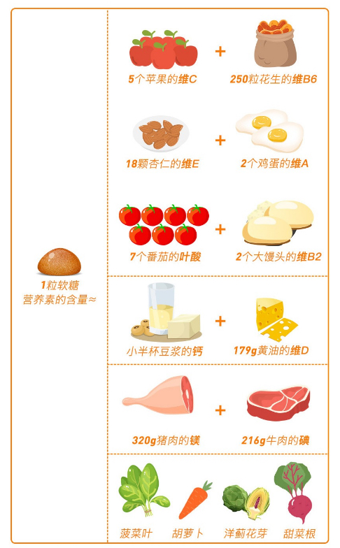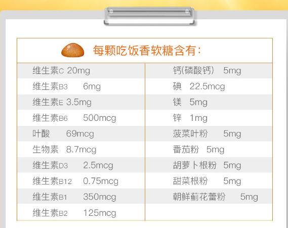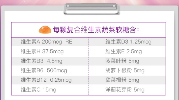软糖成分能保证小朋友摄取足够的维生素,有助优化小朋友成长。