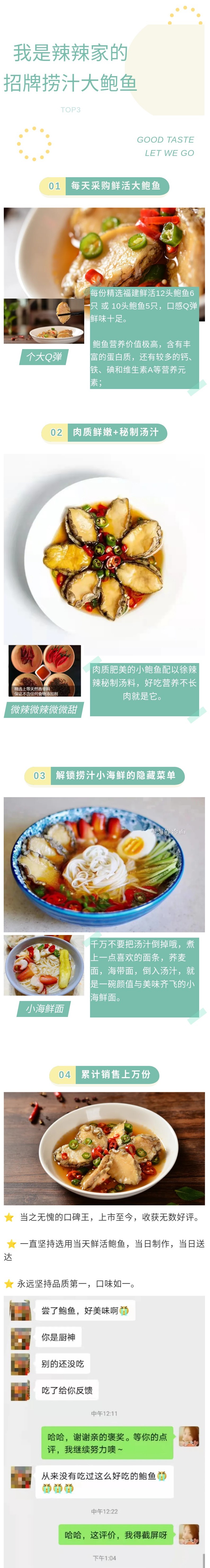 捞汁麻辣鲍鱼(每份12头鲍6只或10头鲍5只,视当天采购情况配送)【周二店休】