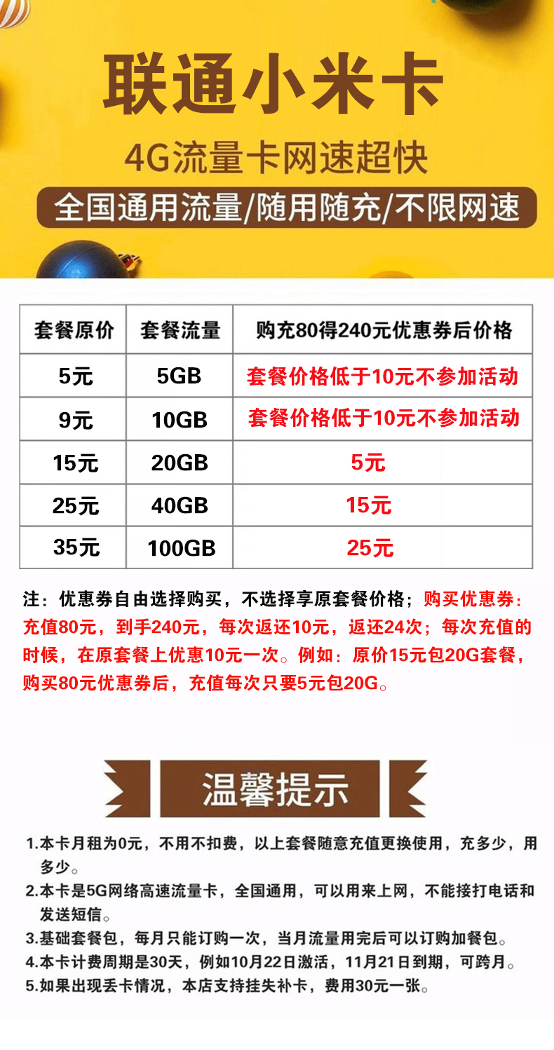 温馨提示:本卡收到后需要按照快递里的说明书激活充值使用。云南、新疆、西藏、广东茂名地区使用本卡会自动注销,请务必不要在这几个地区使用。