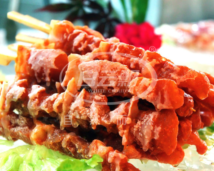 A:肉串火候到六七分熟后,撒上孜然椒盐等调味品,或抹上调味料