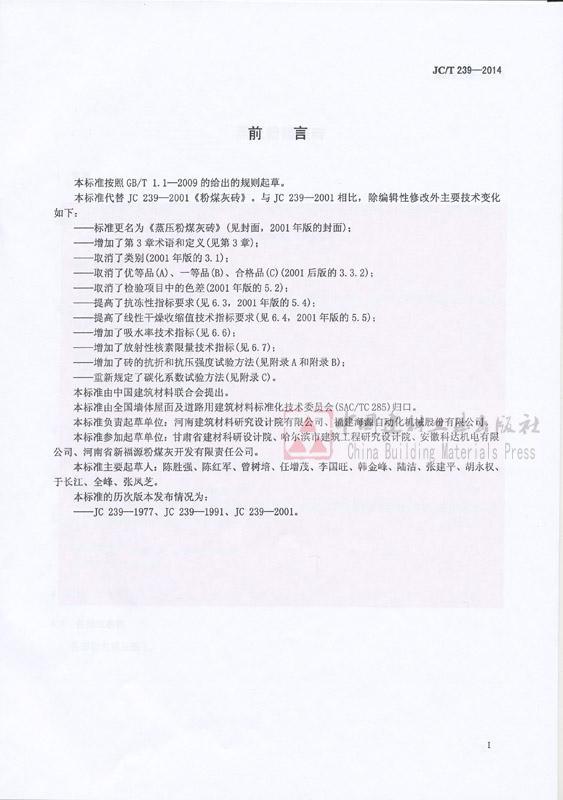 蒸压粉煤灰砖(JC/T239-2014代替JC239-2001)