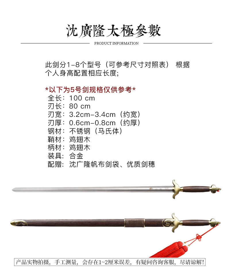 神武太极剑 不锈钢太极剑标准太极剑沈广隆剑铺龙泉沈广隆宝剑 sgl-8007未开刃