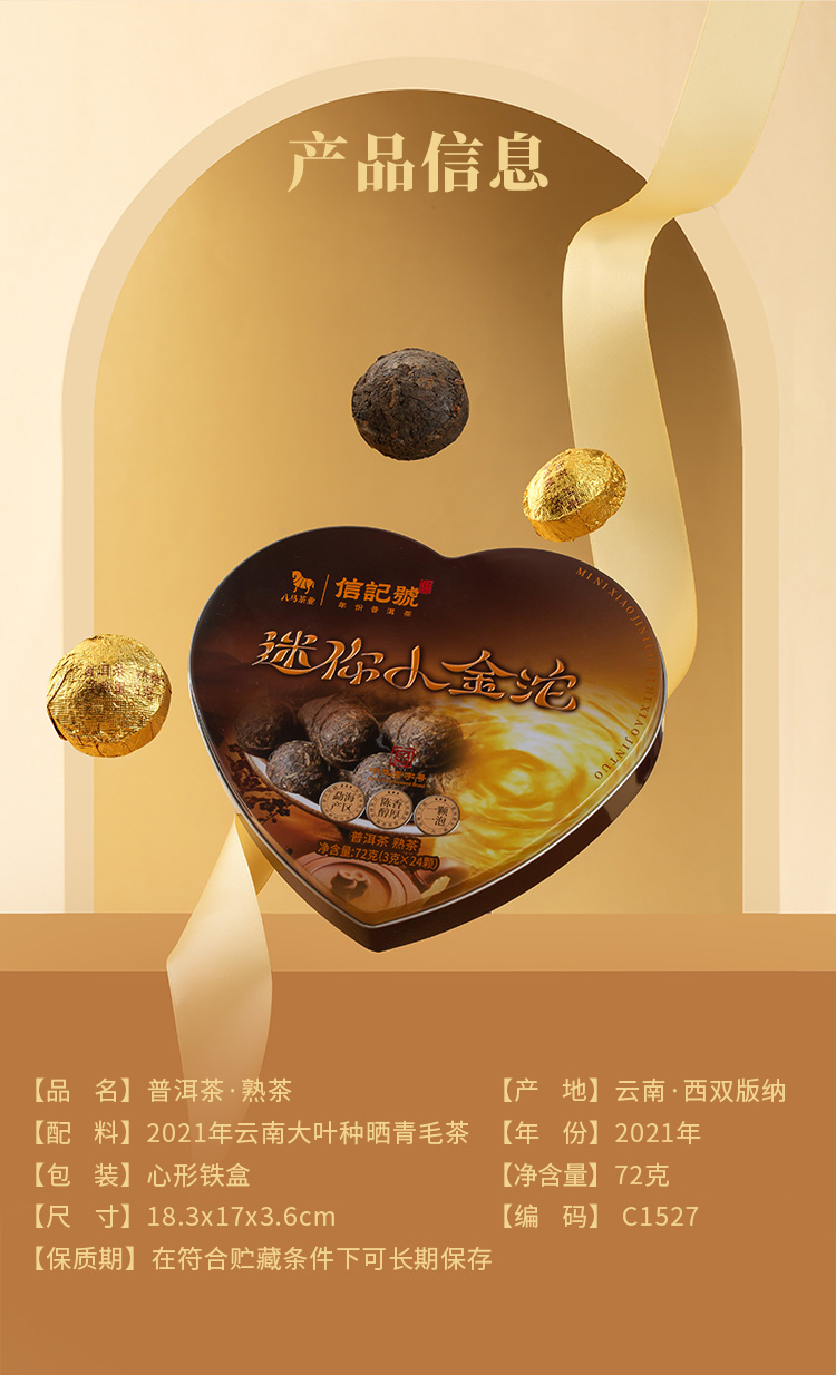 【99元3件】八马茶业 | 信记号迷你小金沱普洱熟茶72克(3克*24颗)