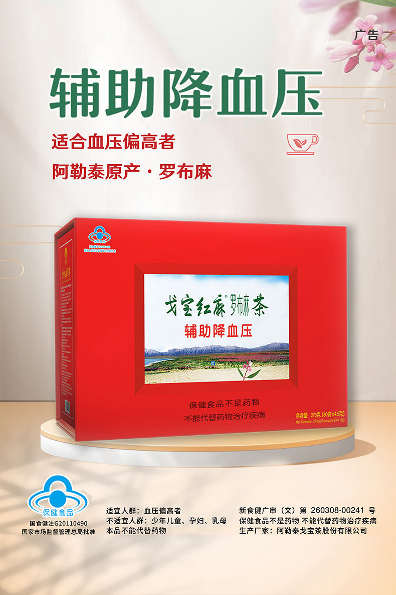 【新疆阿勒泰原产地】戈宝红麻罗布麻原叶茶适合血压偏高者中老年养生茶礼盒4.5g*60袋