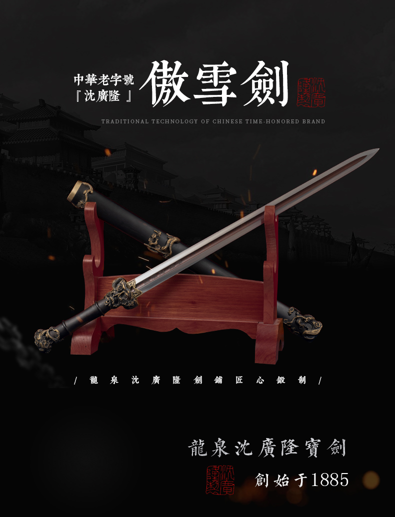 - 龙泉沈广隆剑舖创始于1885年(清光绪)位于浙江省龙泉市,是当地唯一一家“子承父业”一脉相承的中华老字号宝剑生产企业,是国家级非物质文化遗产龙泉宝剑项目保护单位,并以“天下第一剑”闻名于海内外....