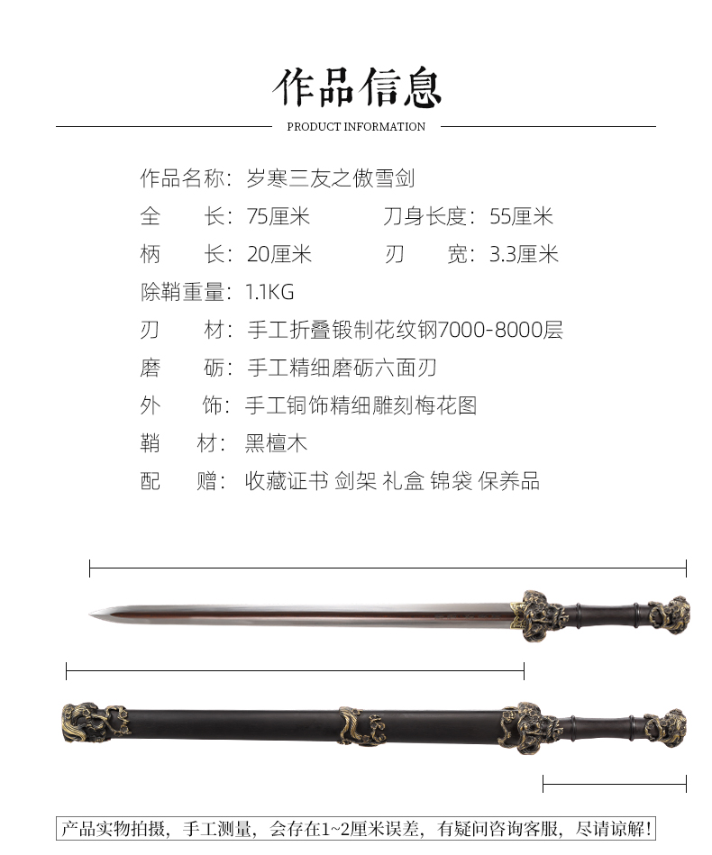 岁寒三友 傲雪剑 龙泉沈广隆宝剑 镇宅宝剑 龙泉沈广隆剑传统剑收藏宝剑 sgl-3020未开刃