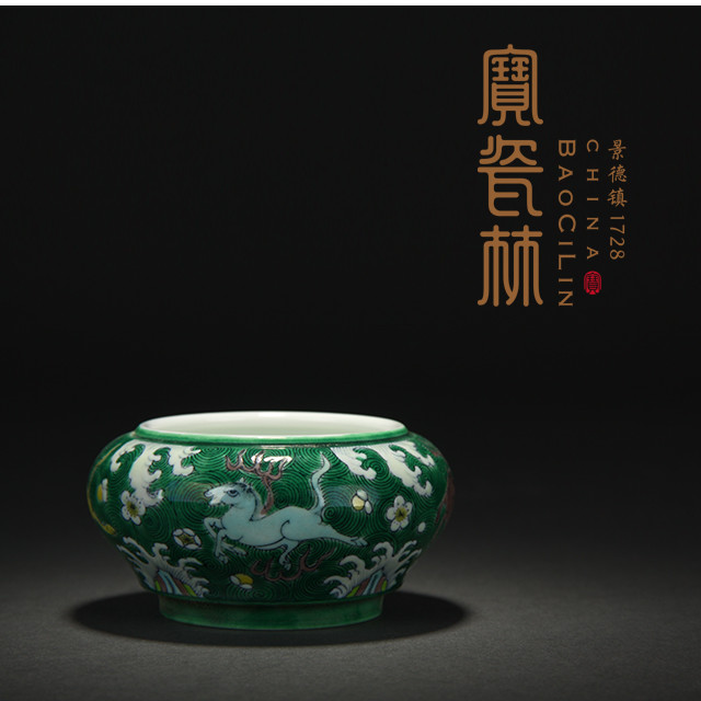 【宝瓷林】素三彩海马纹笔洗(预售)