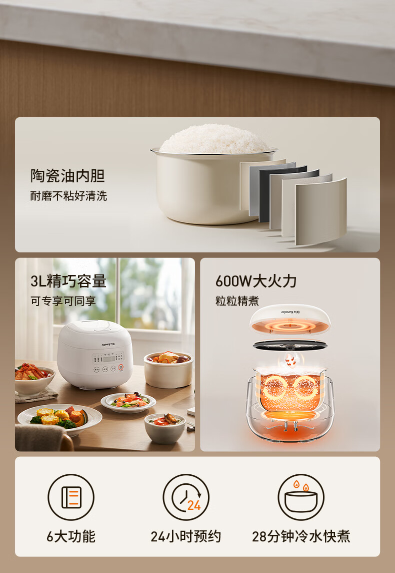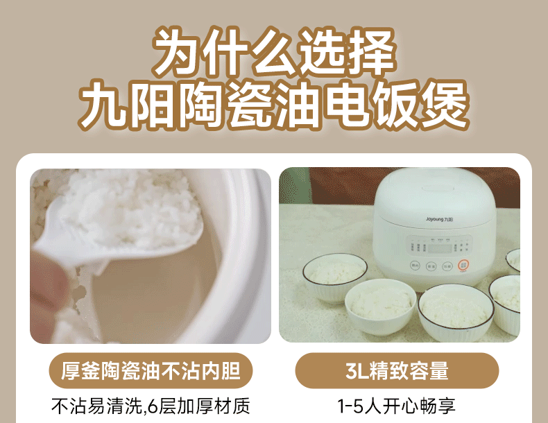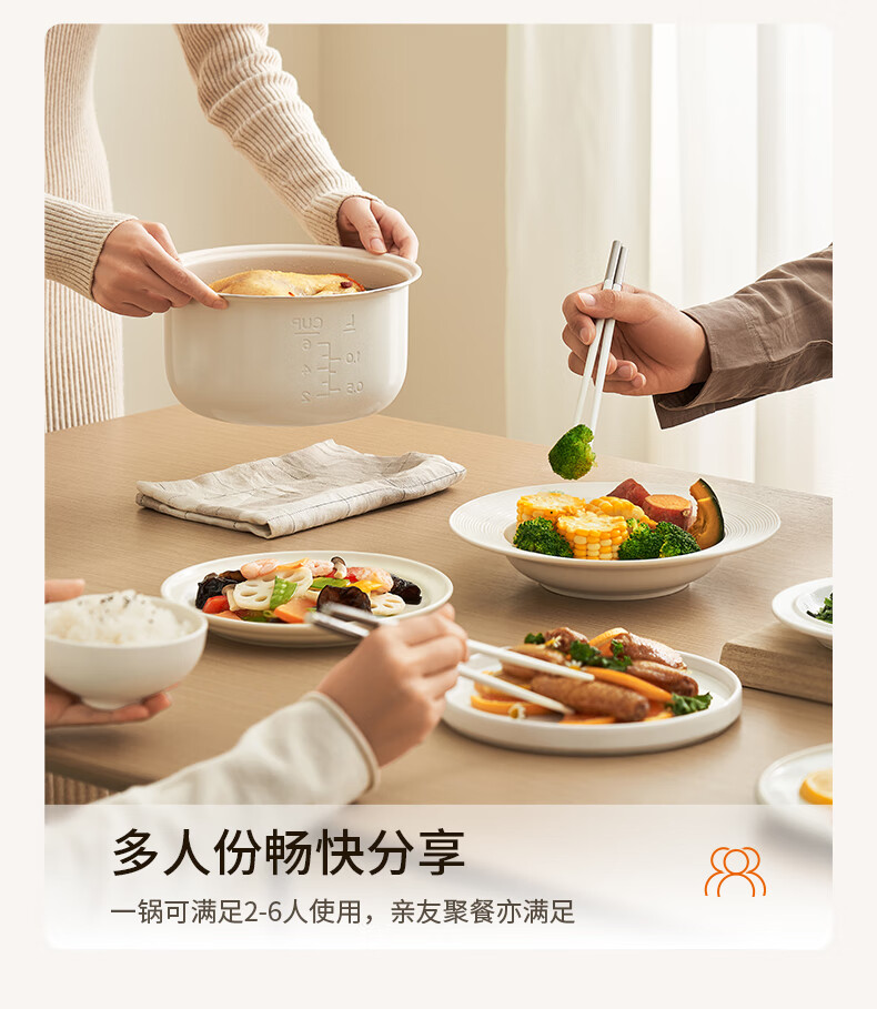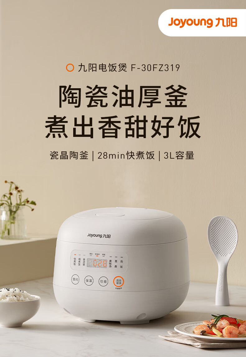 九阳电饭煲3L4L5L升家用多功能智能预约铜匠厚釜内胆电饭锅蒸饭煮饭锅