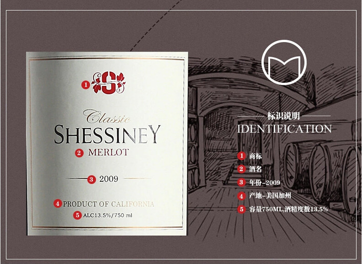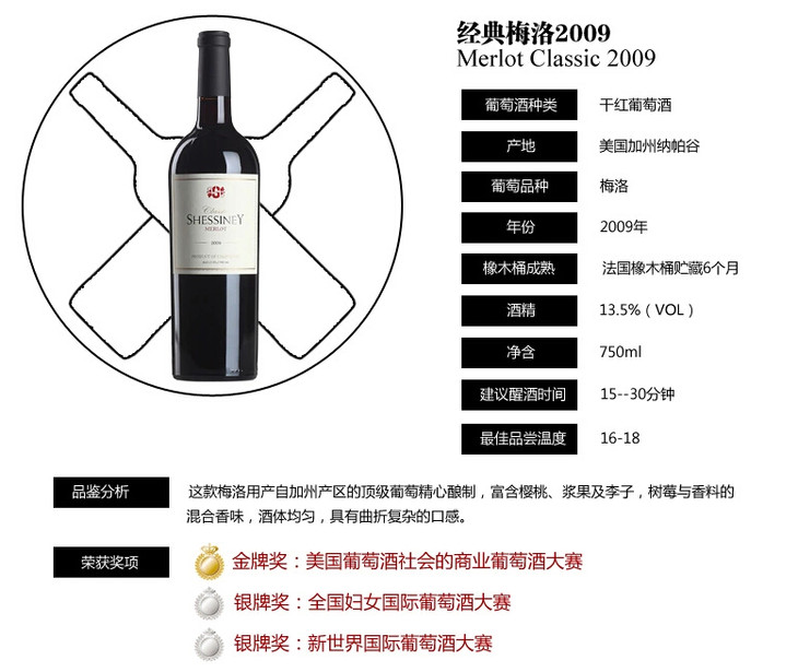 雪诗尼 美国加州经典梅洛2009干红葡萄酒