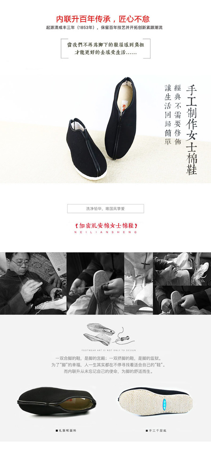 内联升女鞋手工棉鞋千层底保暖圆头加密礼安棉8239A