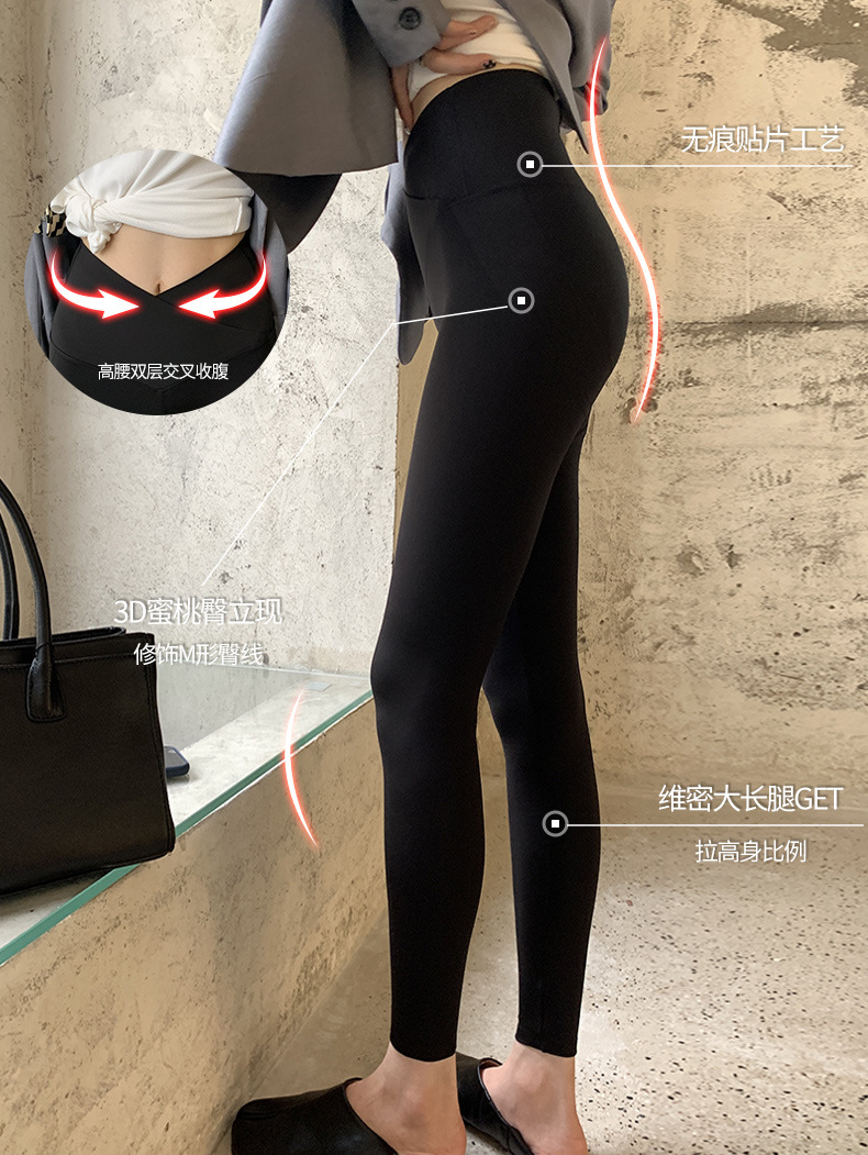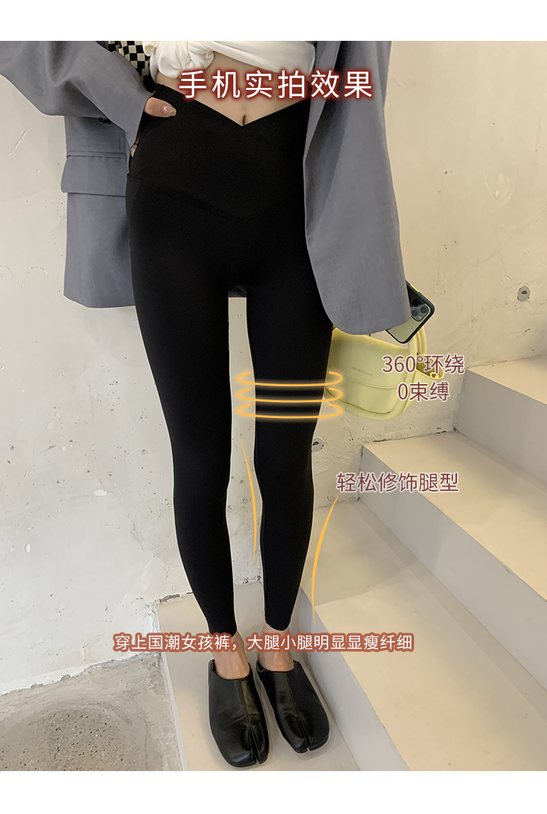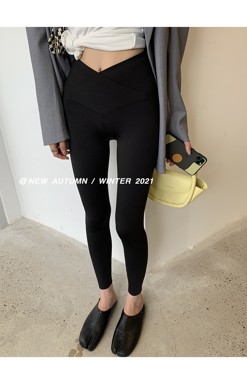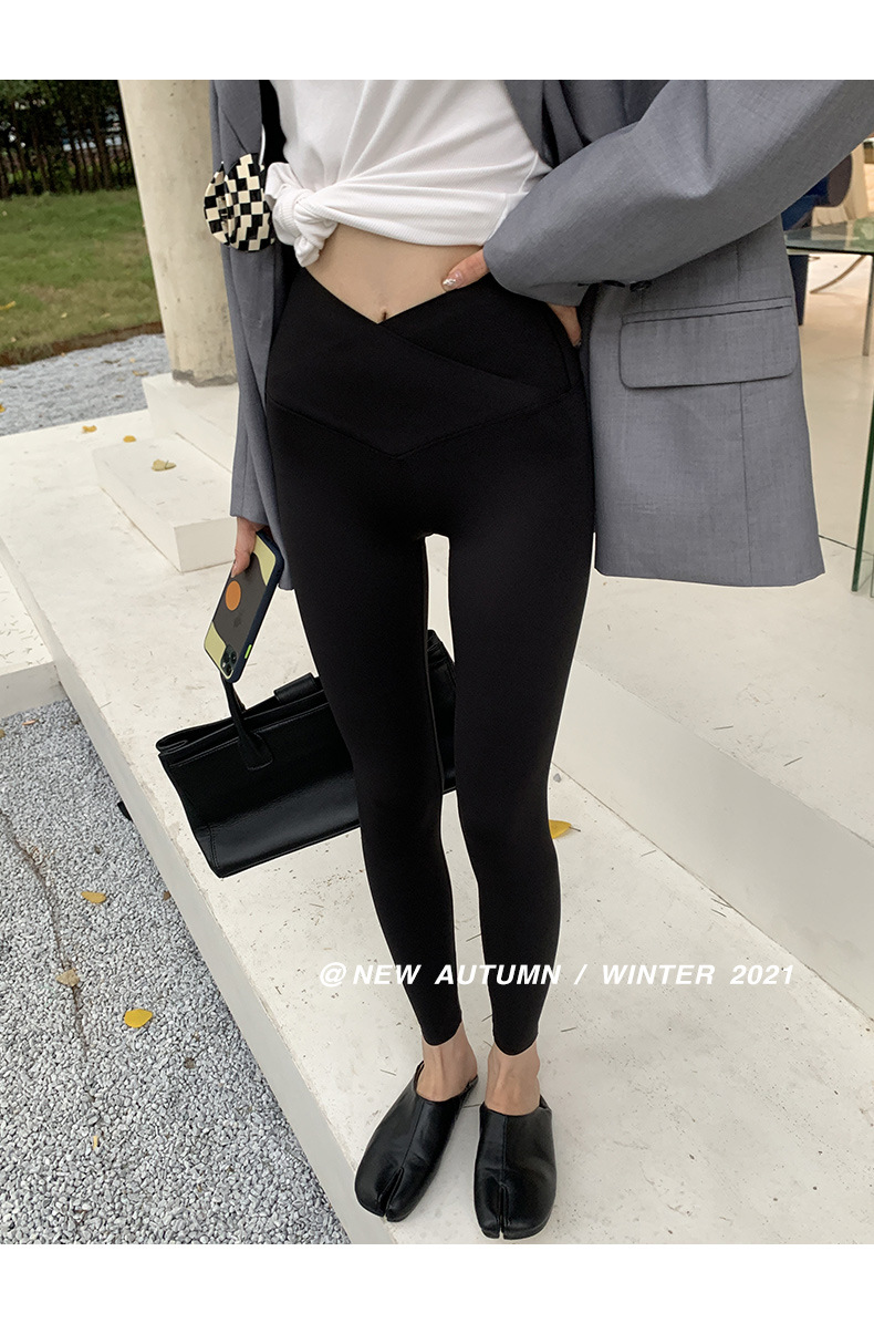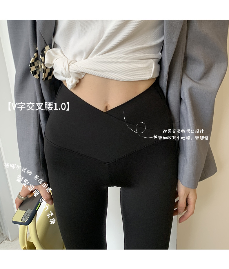 【超级显“瘦”】秋冬交叉腰健身瑜伽提臀芭比裤显高显瘦提臀收腹加大码V腰鲨鱼裤黑色打底裤女外穿