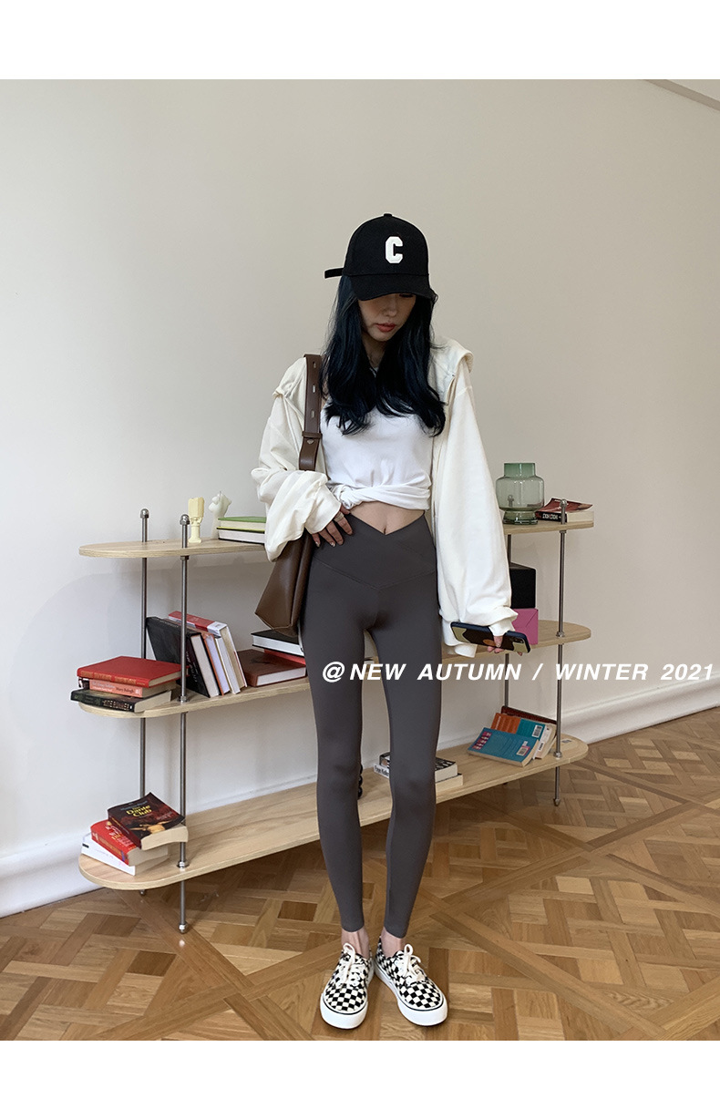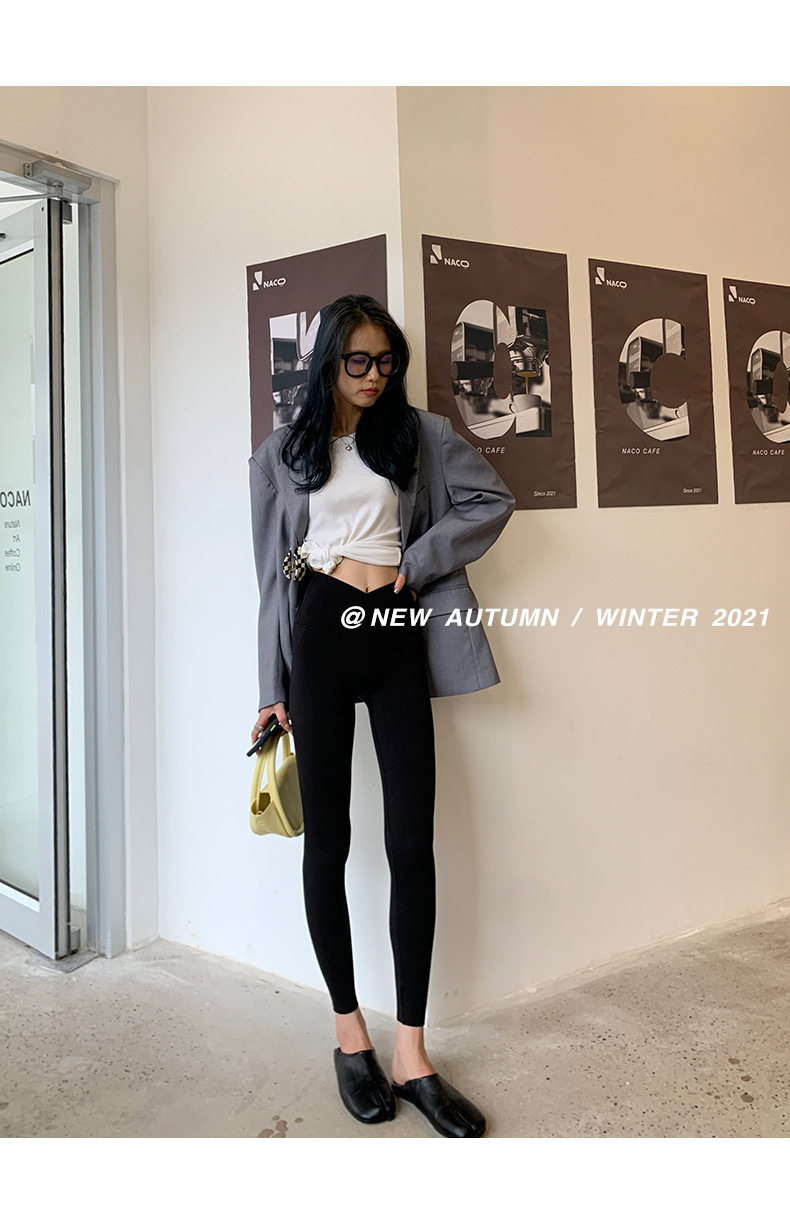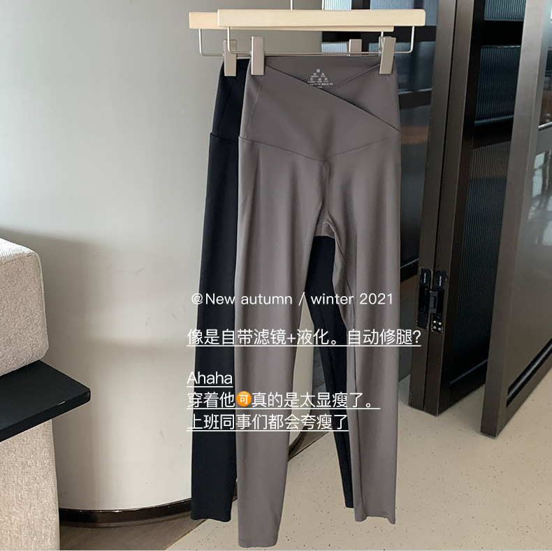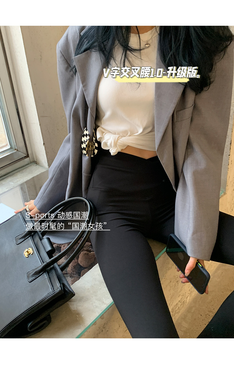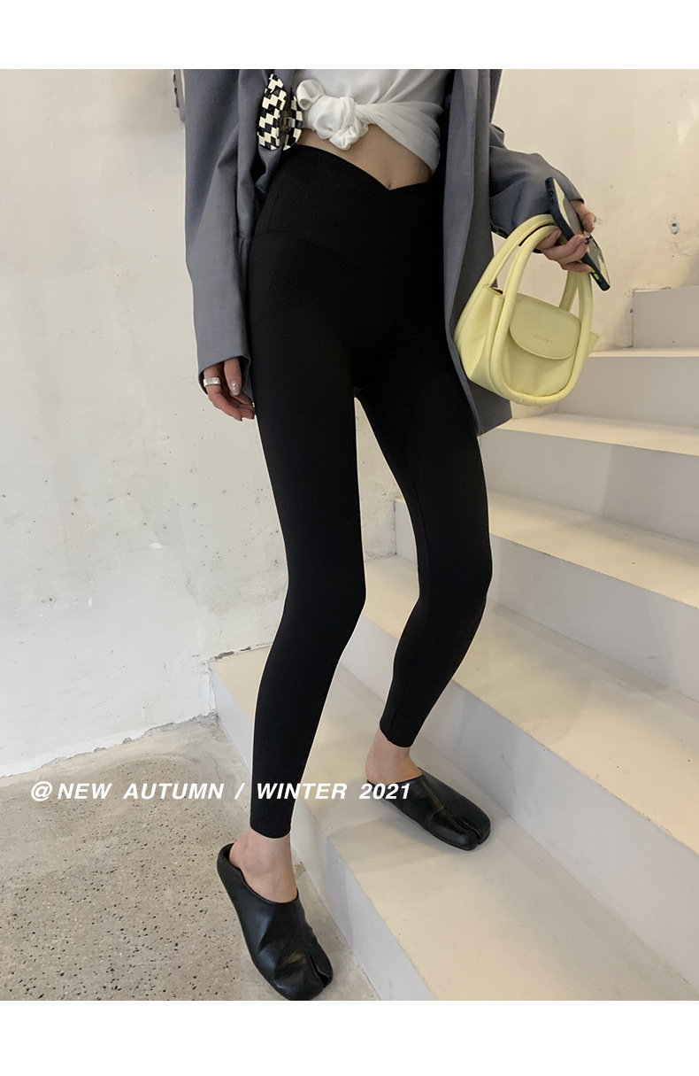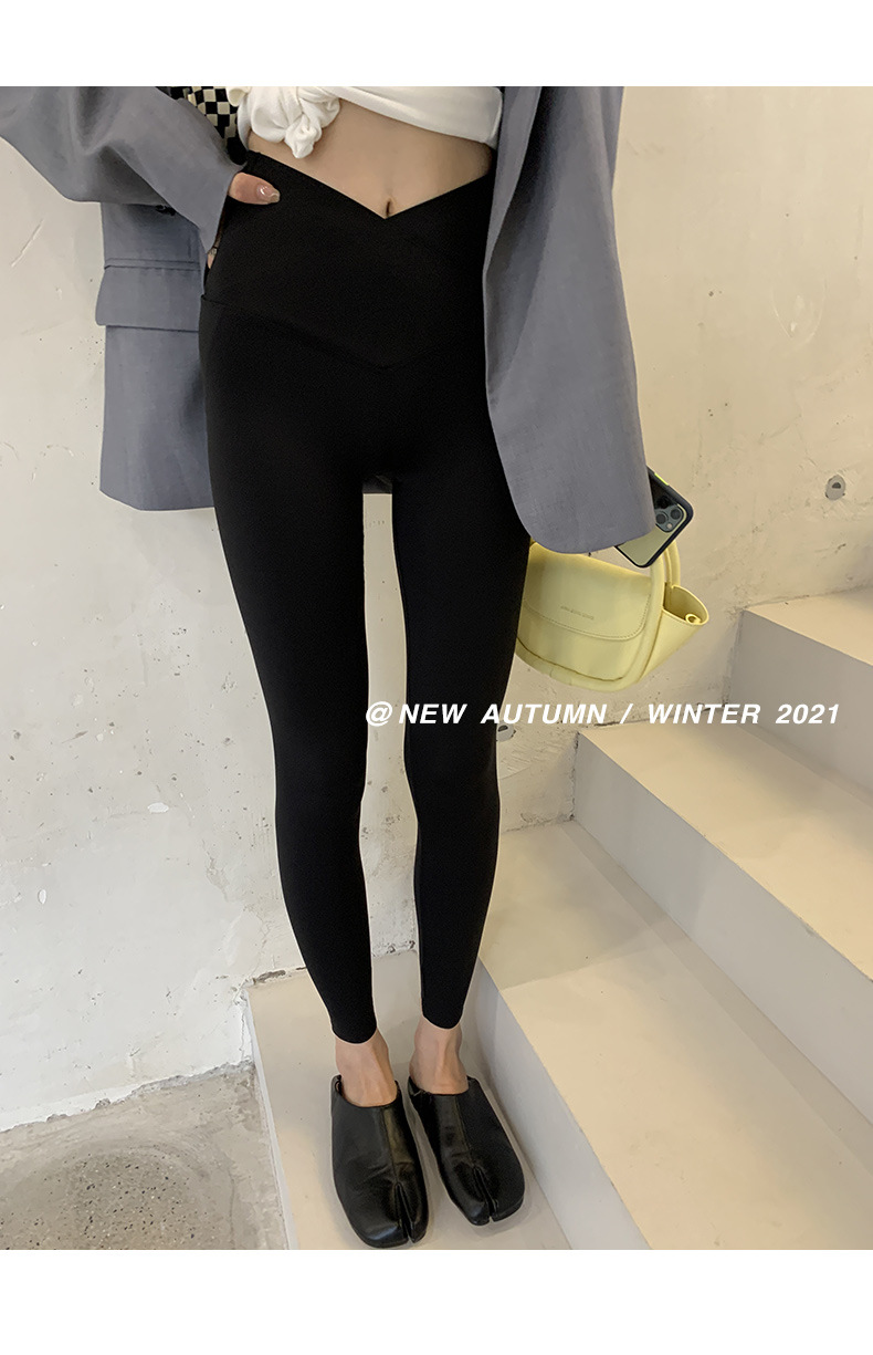 【超级显“瘦”】秋冬交叉腰健身瑜伽提臀芭比裤显高显瘦提臀收腹加大码V腰鲨鱼裤黑色打底裤女外穿
