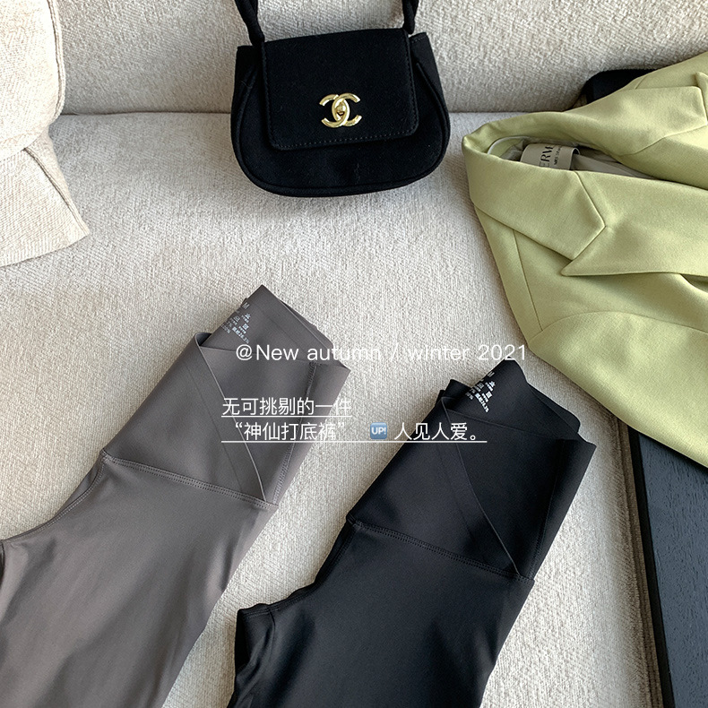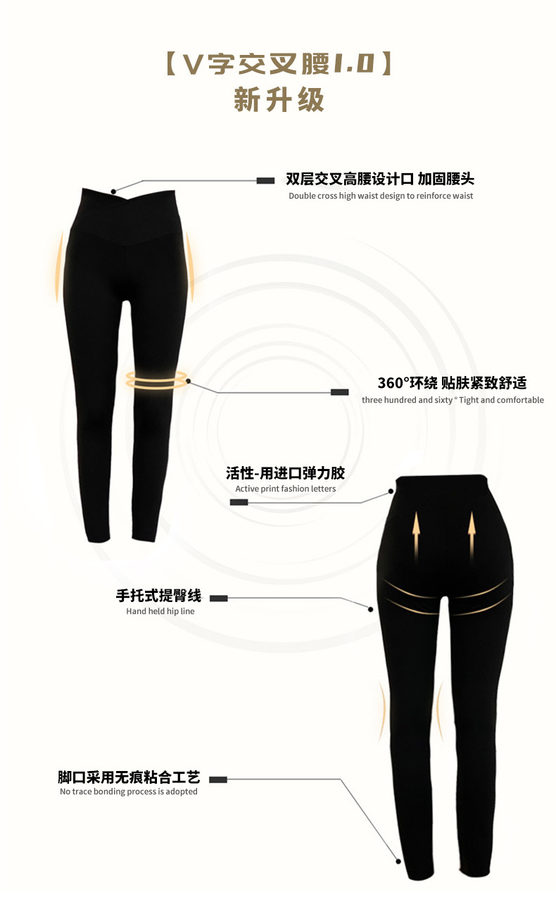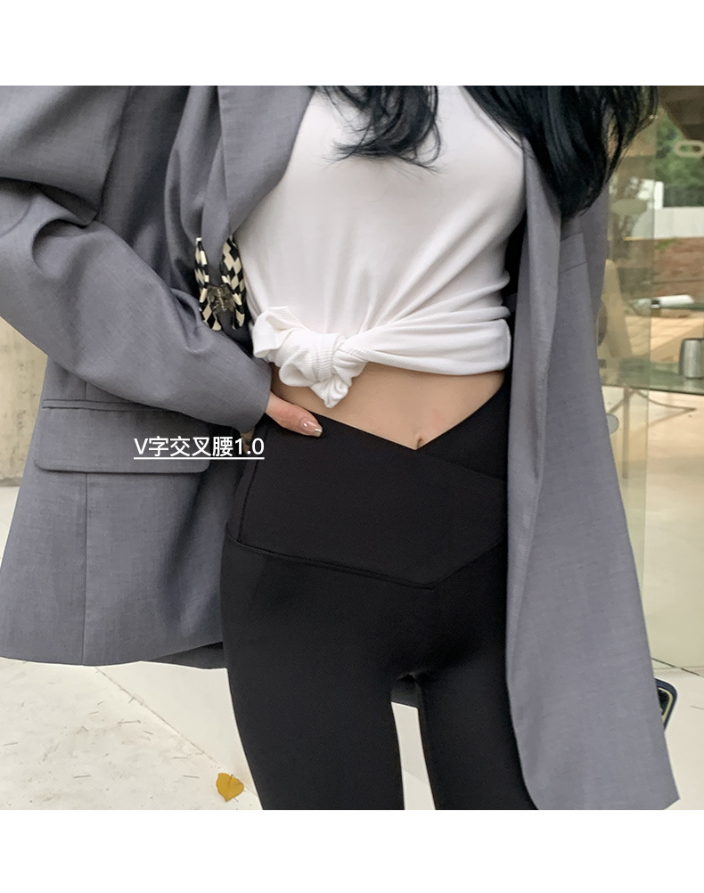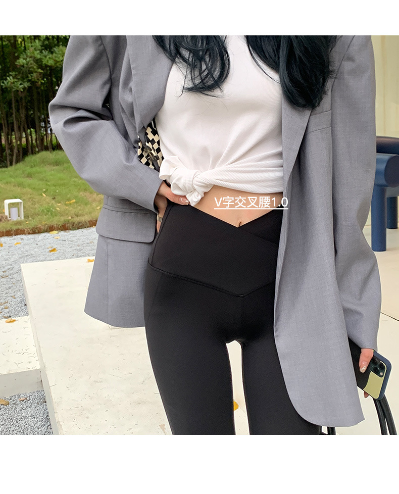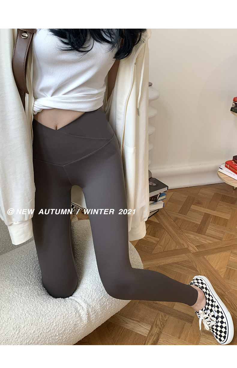 【超级显“瘦”】秋冬交叉腰健身瑜伽提臀芭比裤显高显瘦提臀收腹加大码V腰鲨鱼裤黑色打底裤女外穿
