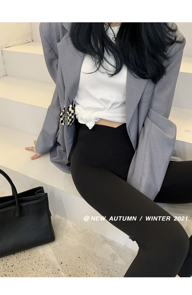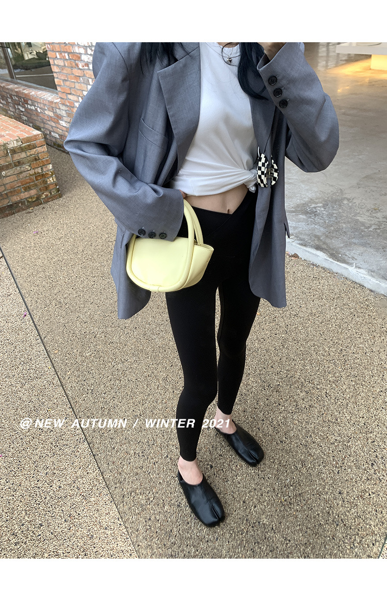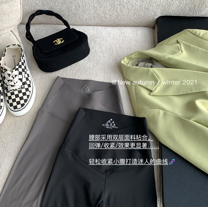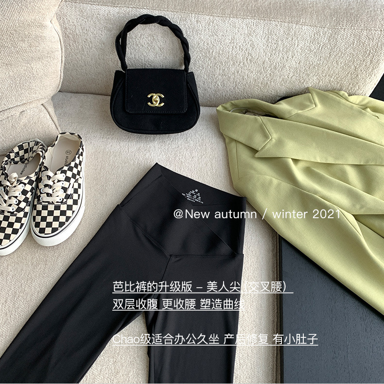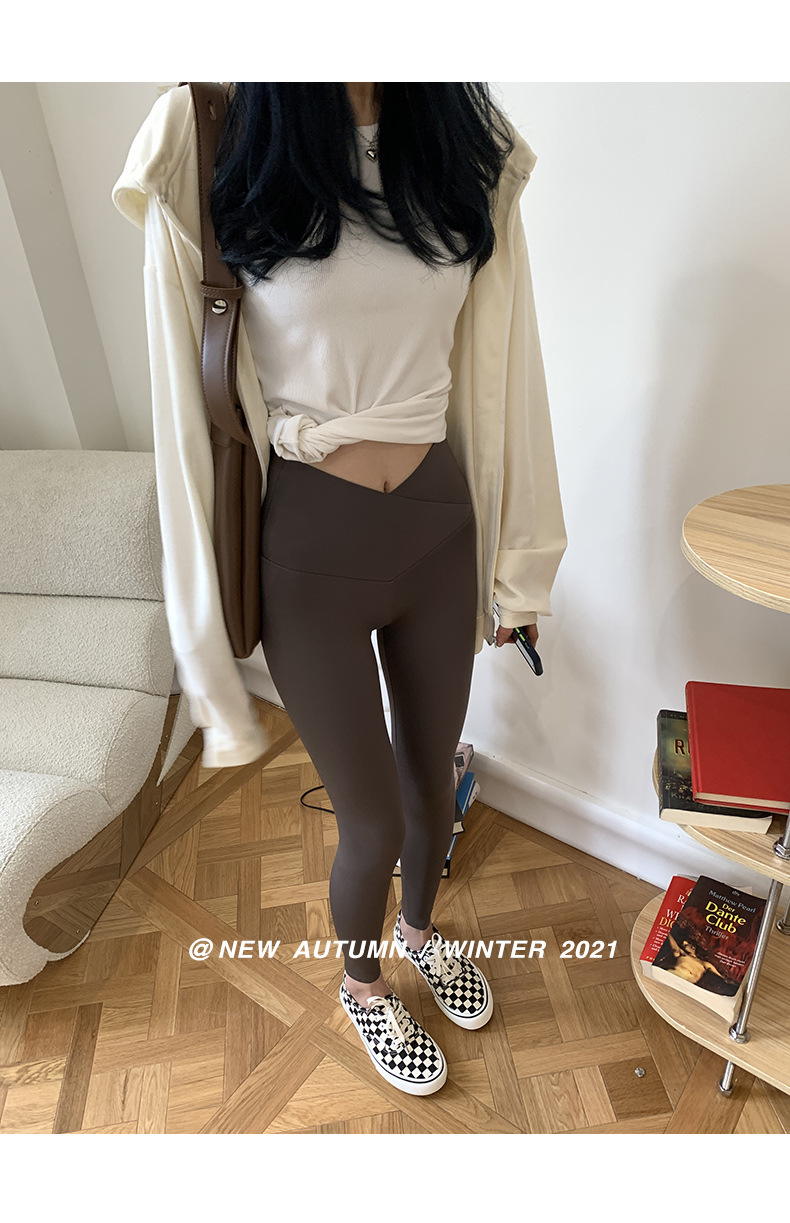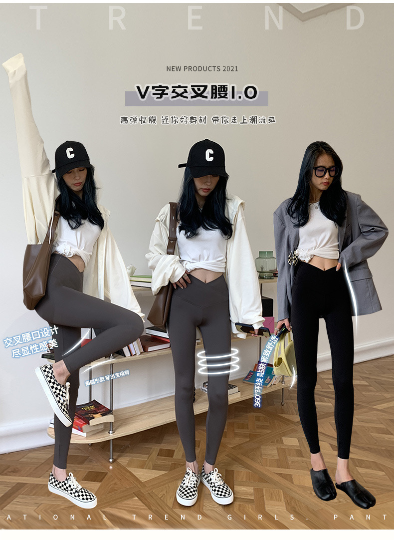 【超级显“瘦”】秋冬交叉腰健身瑜伽提臀芭比裤显高显瘦提臀收腹加大码V腰鲨鱼裤黑色打底裤女外穿