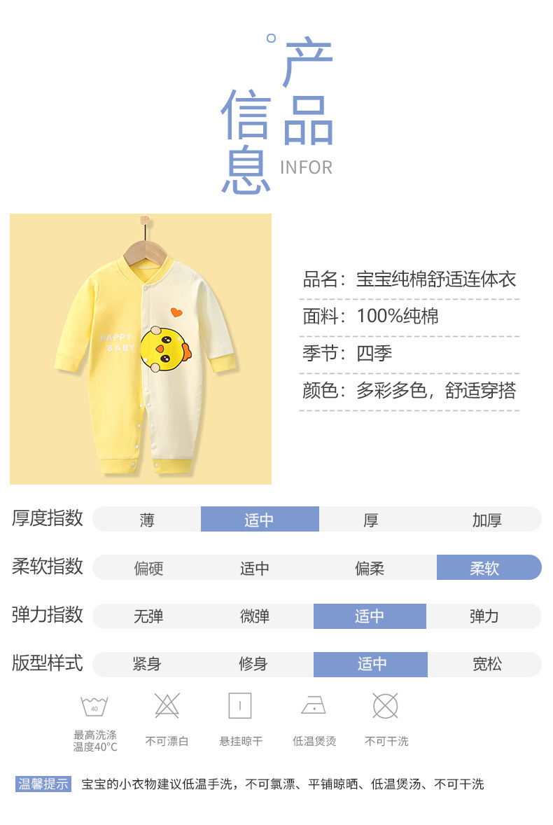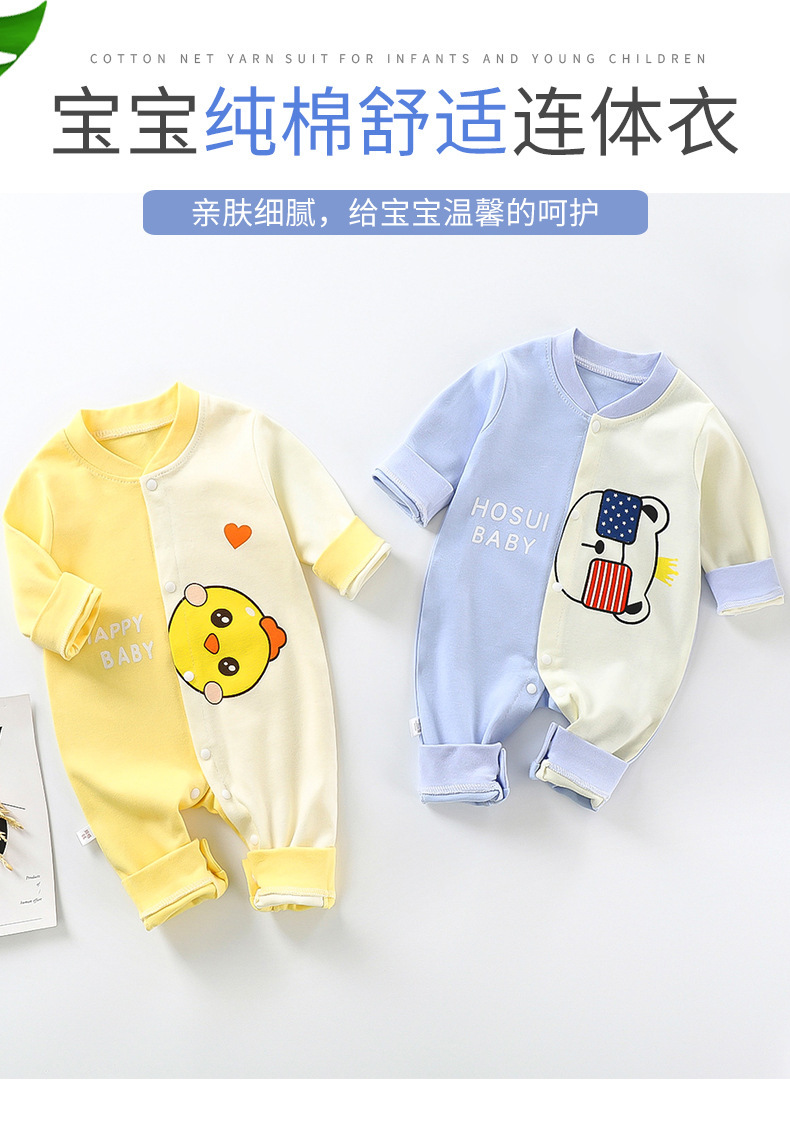 【亲肤细腻 童趣可爱】新生婴儿纯棉爬服A类内衣套装春秋新款连体长袖初生宝宝衣服