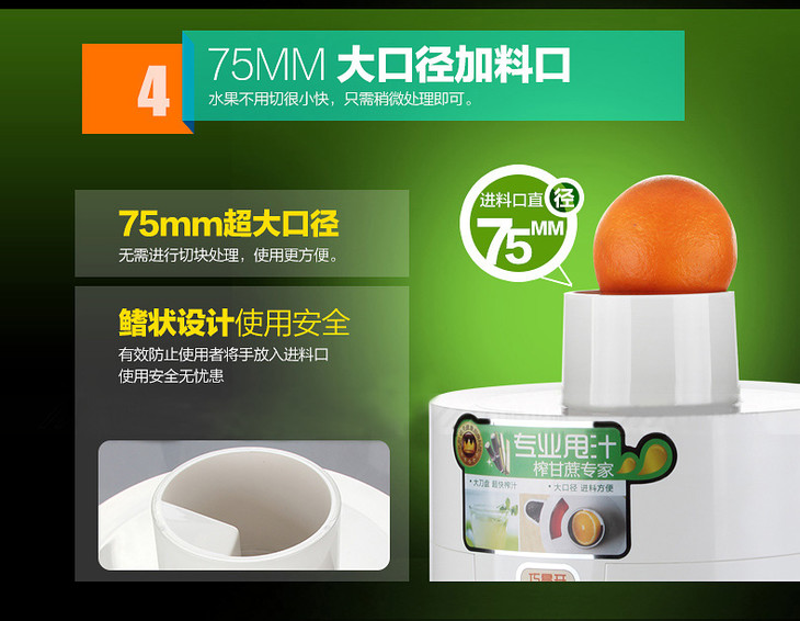 九阳榨汁机超大口径 高出汁率 超强榨甘蔗 JYZ-S6