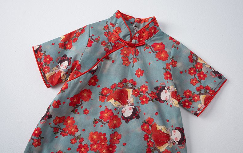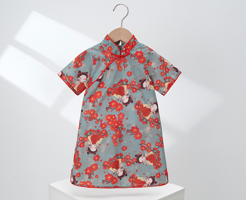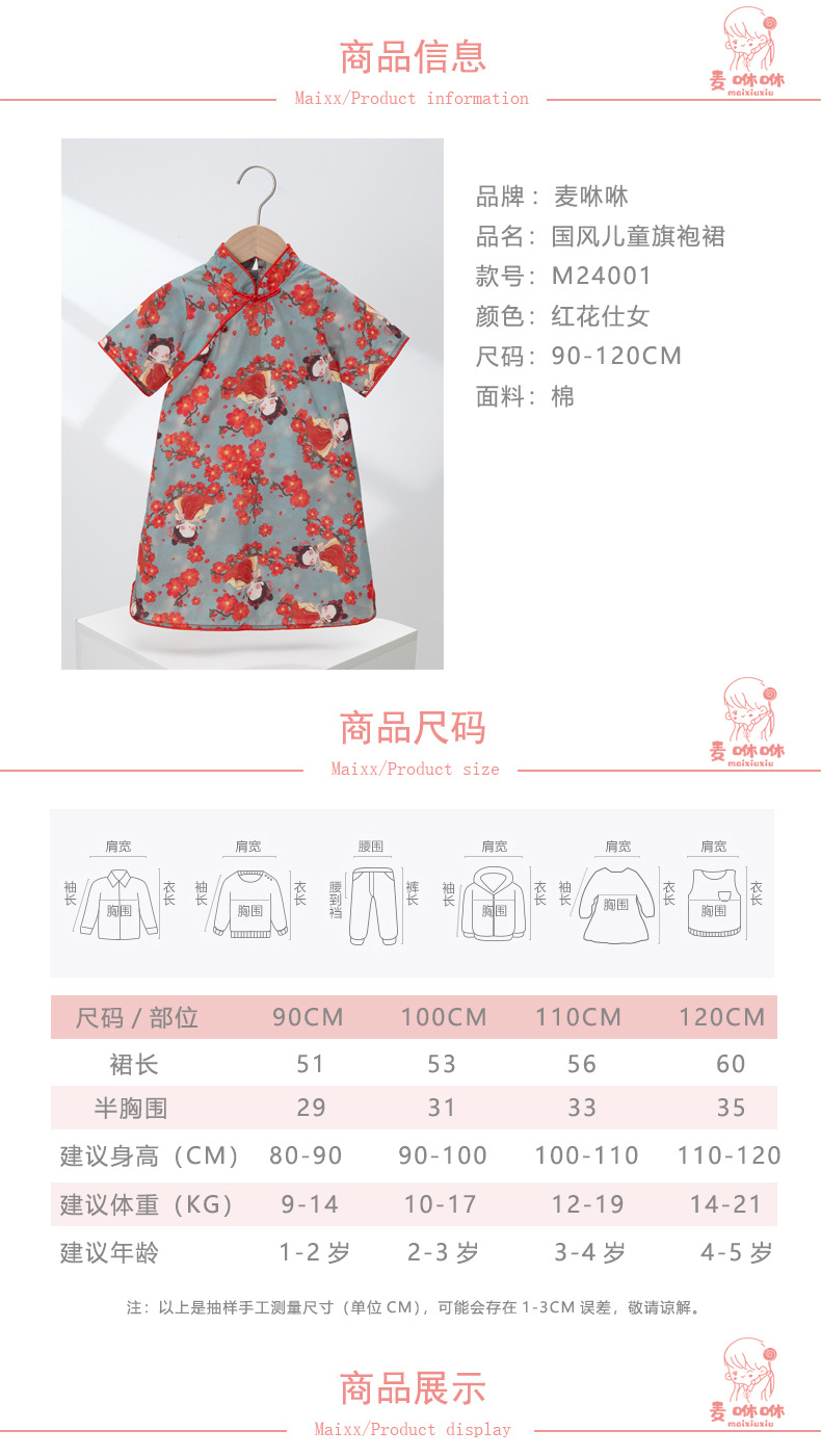 【女童国风连衣裙】2024麦咻咻女童旗袍夏季中国风复古连衣裙宝宝汉服儿童薄款短袖