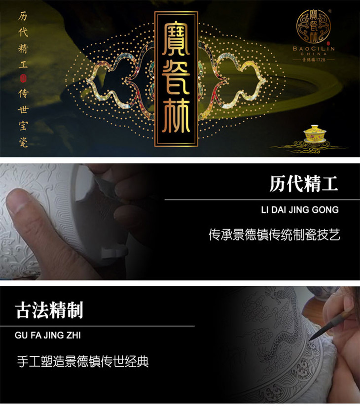 宝瓷林,2008年创立,是一家将传统清宫官窑制瓷技艺,移植于当代家居日用瓷品上的景德镇陶瓷骨干企业,是当下唯一一家代表“千年瓷都-景德镇”走向全球的陶瓷连锁品牌,被誉为陶瓷界的“国酒茅台”。