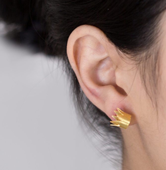 每周特惠!希腊设计师-Kiss the frog-女王的金色皇冠 不对称耳钉 现货