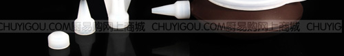 【产品名称】:法国超软拉线壶 【产品尺寸】:直径:8.5cm 高度:3cm 【产品材质】:食用级橡胶,无毒环保。符合美国FDA质量,耐高温400°,耐低温-150° 【产品用途】:酱汁盘饰创意,果酱画勾线,巧克力创意等等。 法国超软酱汁壶,创意盘饰酱汁盘头必备的工具,此工具集容积大,壶身超软,三种酱汁头配置等优点于一身,是酱汁笔及塑料酱汁壶最理想的代替品,使用此款酱汁壶您再也不用为拉线不均匀,笔体较硬不易操作等弊端操心,此款酱汁壶使画出的线条更加优美,无论是线条、圆点、波浪和书写各种字
