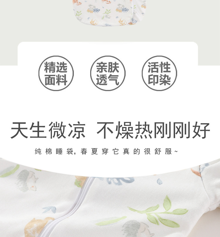 【舒软凉爽 整晚安睡】婴儿睡袋春夏薄款纯棉儿童一体式长袖防踢被幼儿宝宝夏天四季通用