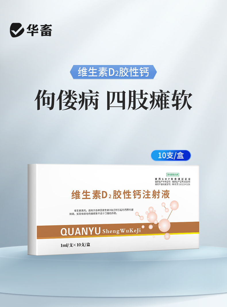 华畜维生素D2胶性钙注射液 补钙 佝偻病软骨症维丁胶性钙