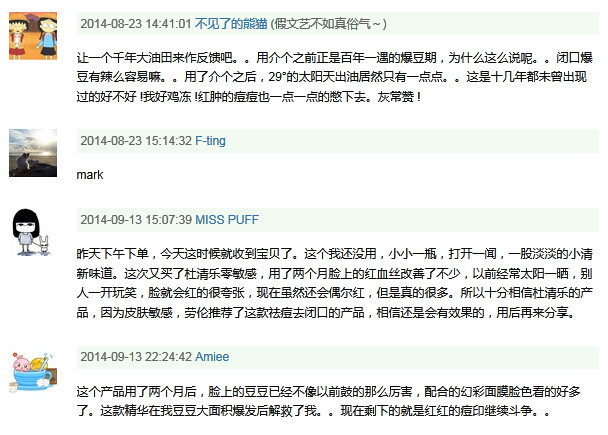 这款祛痘精华液除了适合满脸痘痘的人之外,对于油脂分泌过剩的人来说(比如夏天的我)也是福星。而且让人欢喜的是,它不含任何酸,所以用了它以后不会有你们担心的脱皮搓泥发红等问题,我的个人使用心得就是痘痘会慢慢的一天一个变化的消下去,尤其是大面积红肿的那种,消红的速度非常快。对于闭口也同样有效。