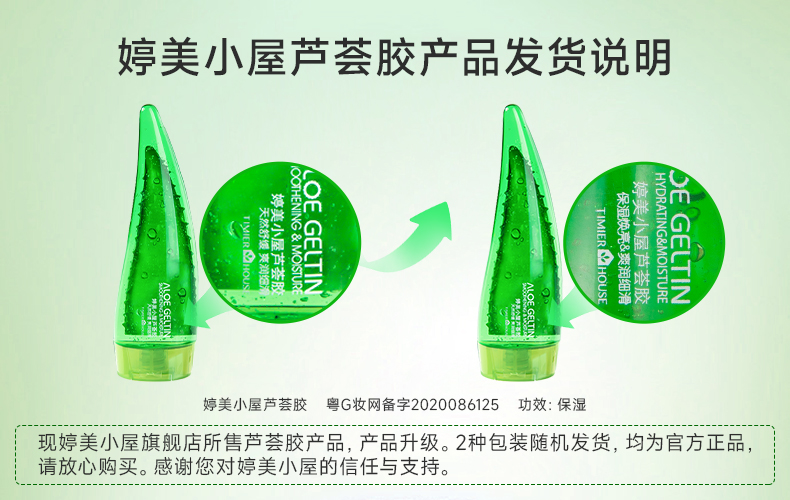 婷美小屋芦荟舒缓保湿凝胶补水面膜晒后芦荟胶正品牛角芦荟胶125g(两支装)