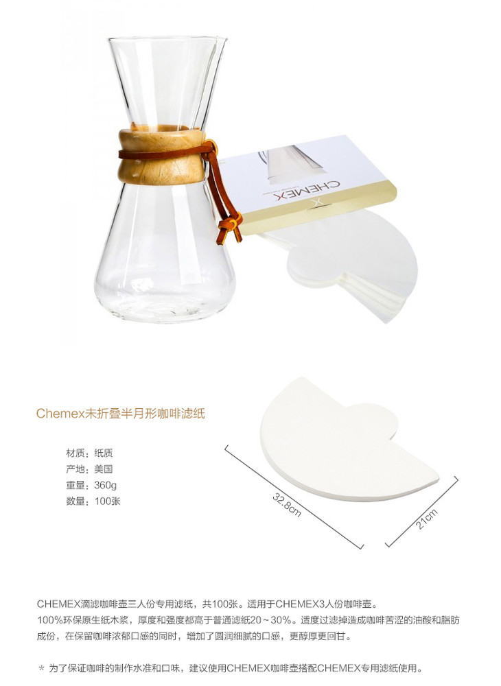 chemex 未折疊半月形濾紙(3人份)【此设备同于商业用途】