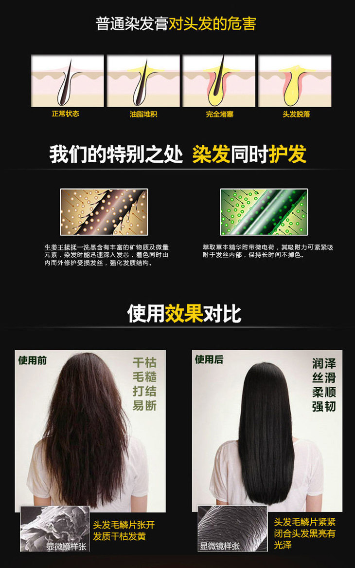魅赞5袋一洗黑植物染发不沾手洗洗染160ml