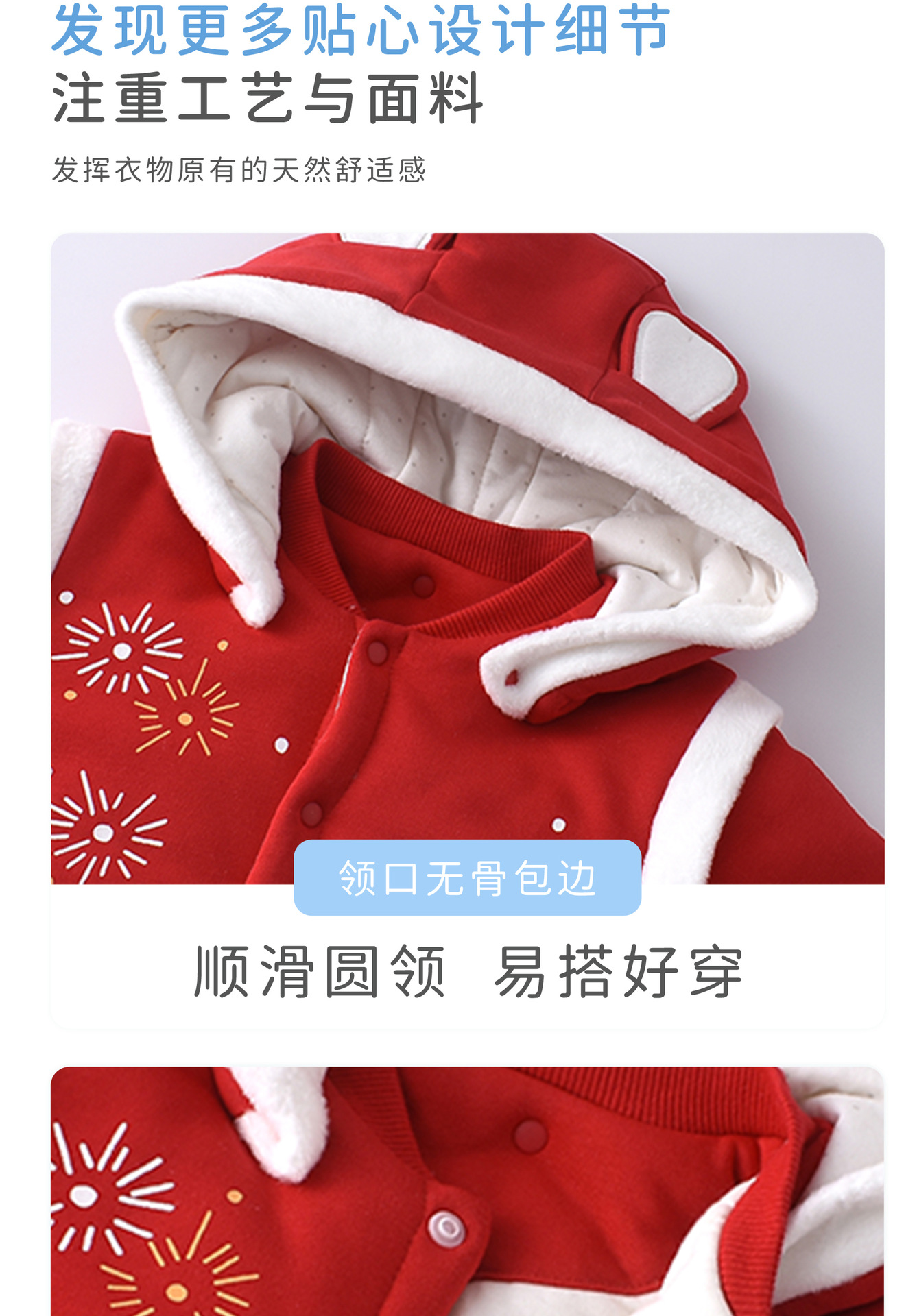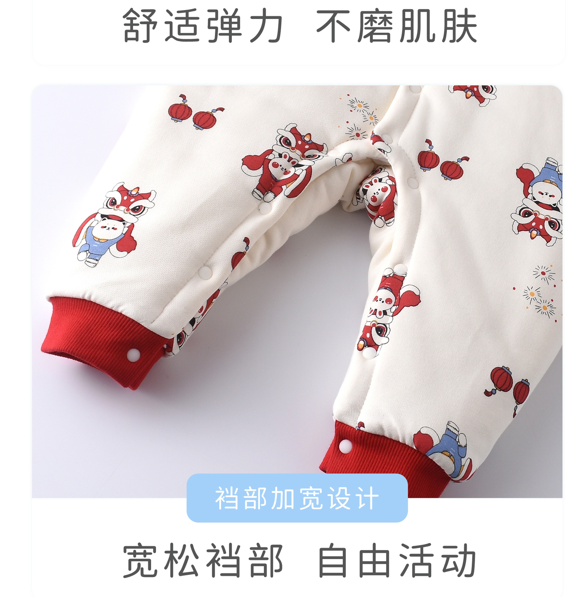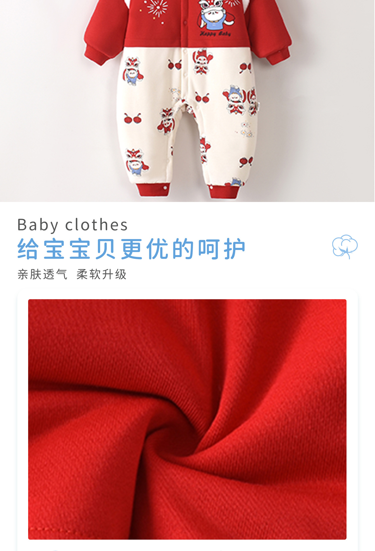 新生儿连体衣喜庆拜年服男女宝宝秋冬季加厚满月服260克婴儿衣服