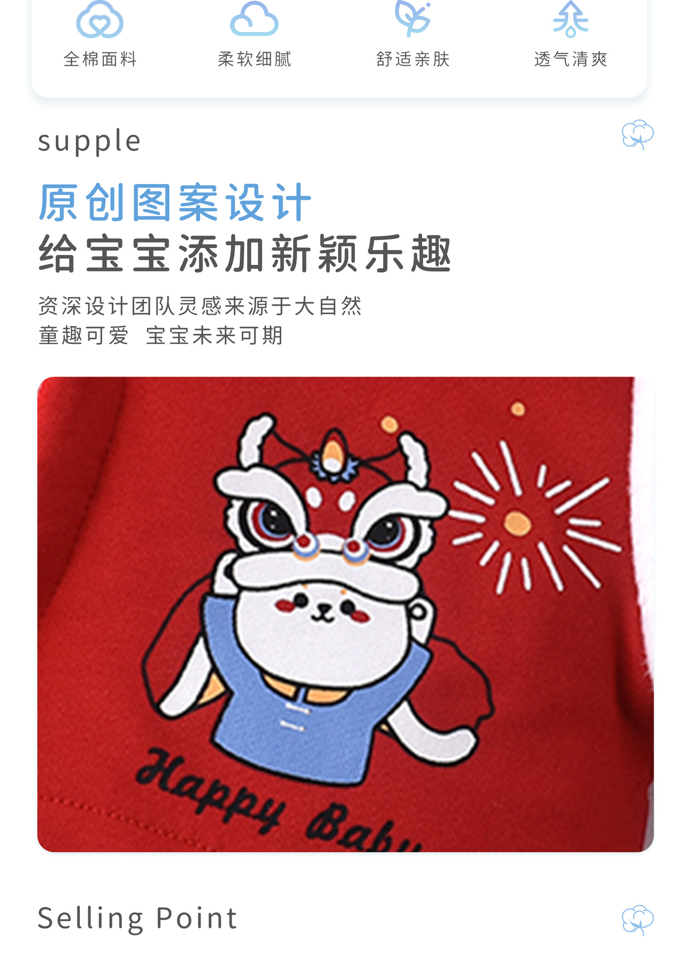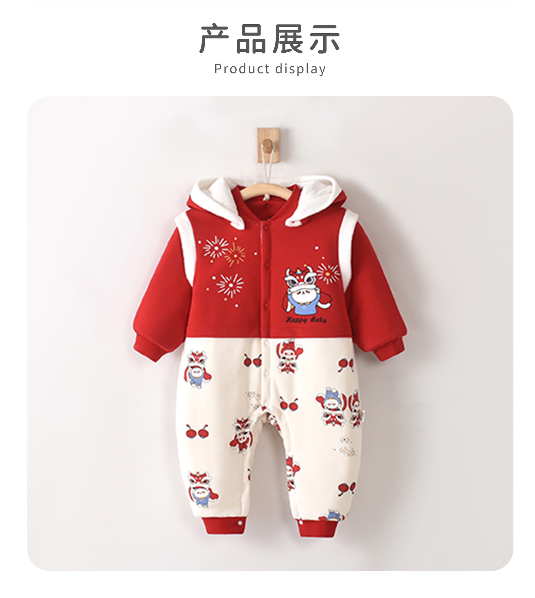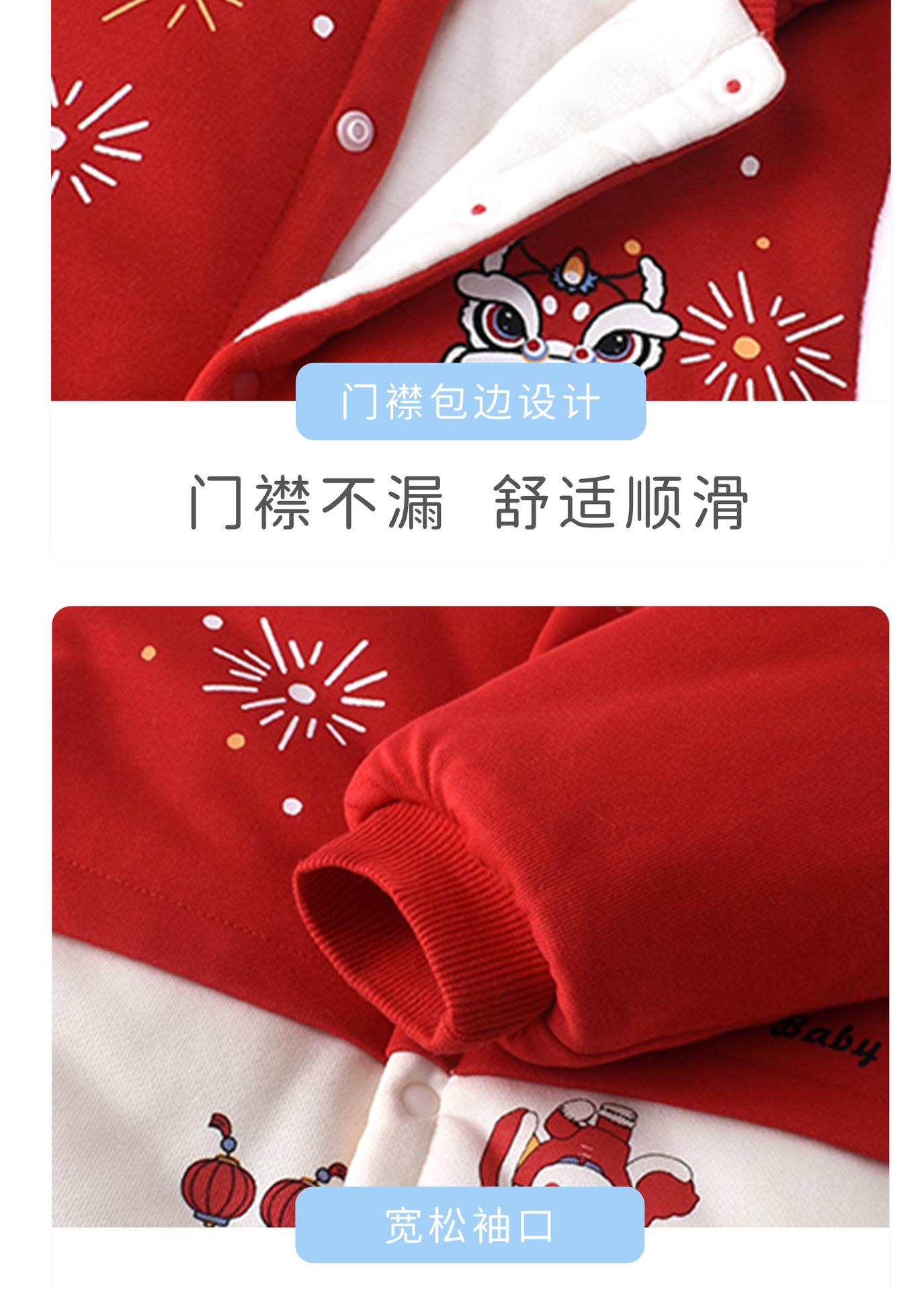 新生儿连体衣喜庆拜年服男女宝宝秋冬季加厚满月服260克婴儿衣服