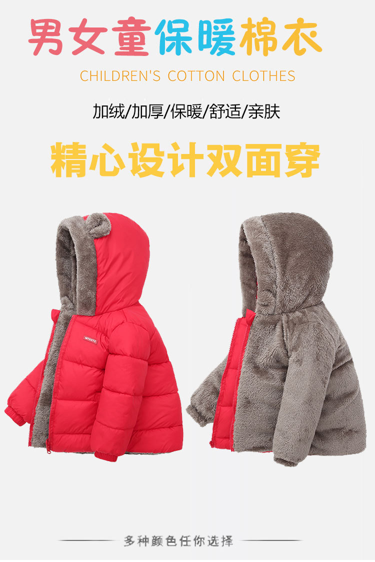 【精心设计双面穿】2023儿童羊羔绒棉衣男童新款棉服女宝宝加厚连帽棉袄中小童冬装
