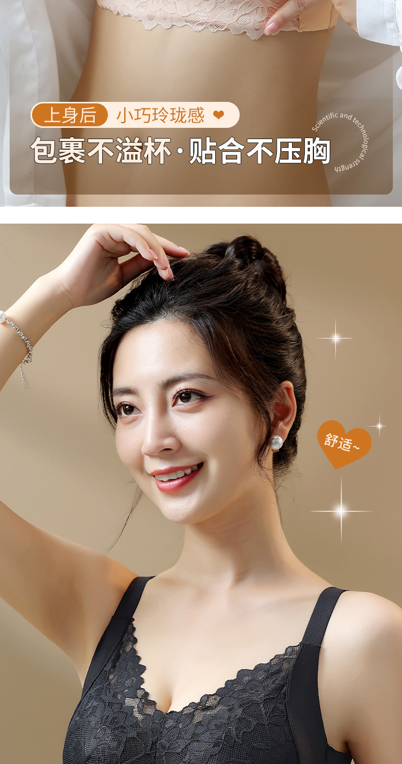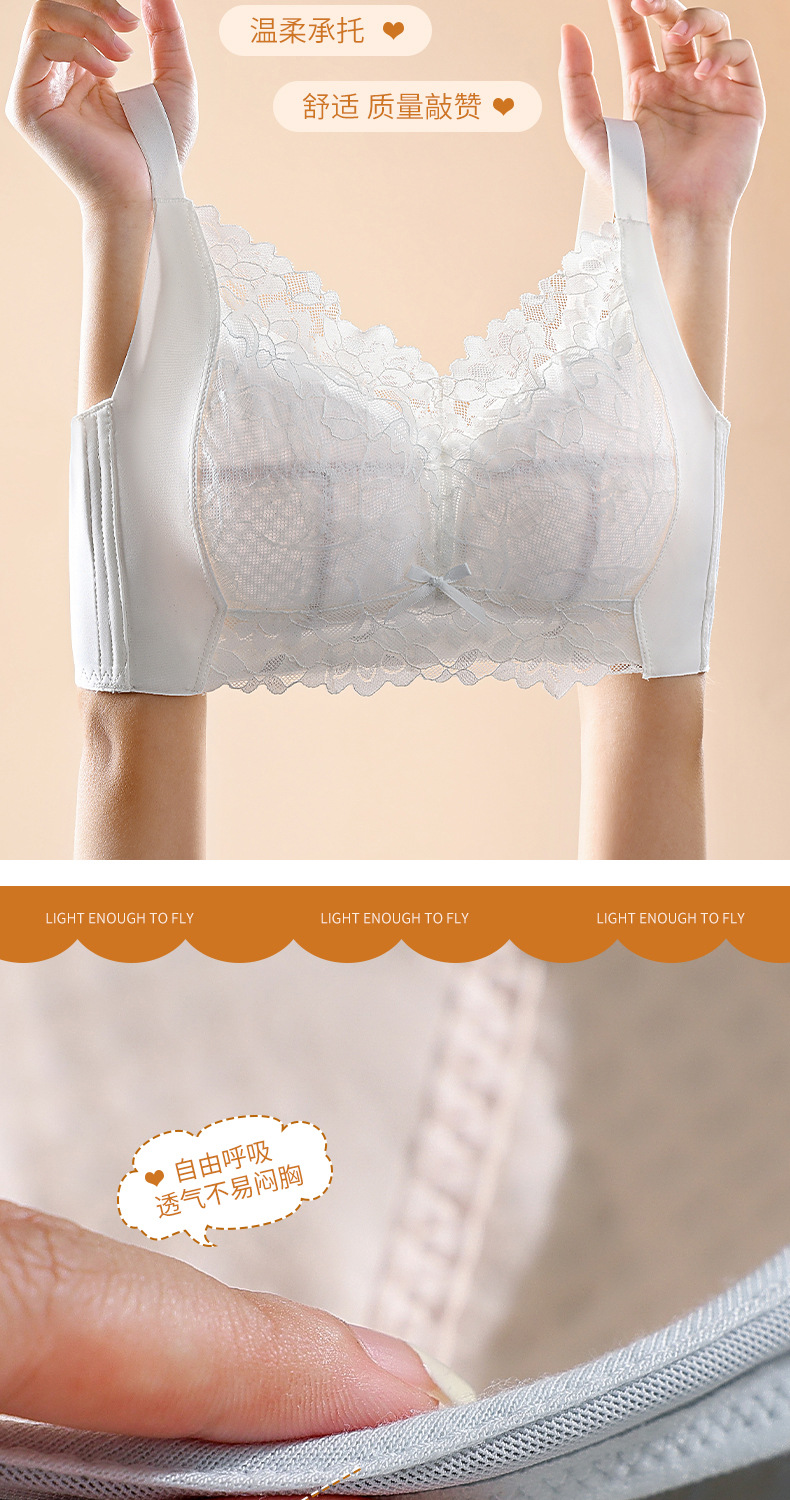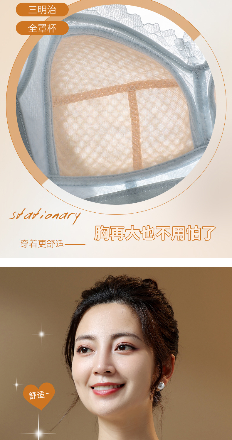 【大胸显小· 三明治全罩杯套装】内衣女蕾丝大胸显小薄款聚拢显瘦防下垂收副乳透气无钢圈调整文胸