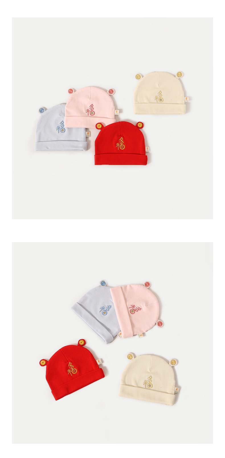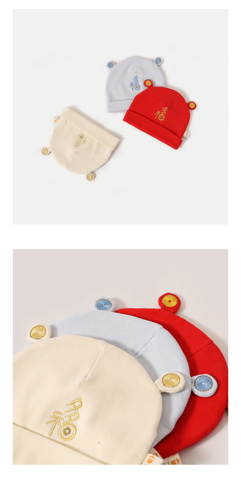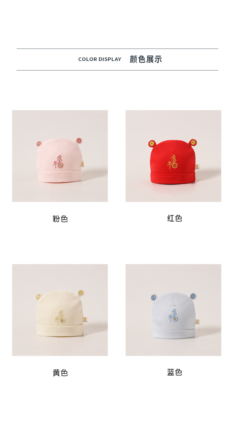 婴儿帽子秋冬 中国风纯棉金丝福字新生儿胎帽国潮喜庆宝宝帽子0-3岁