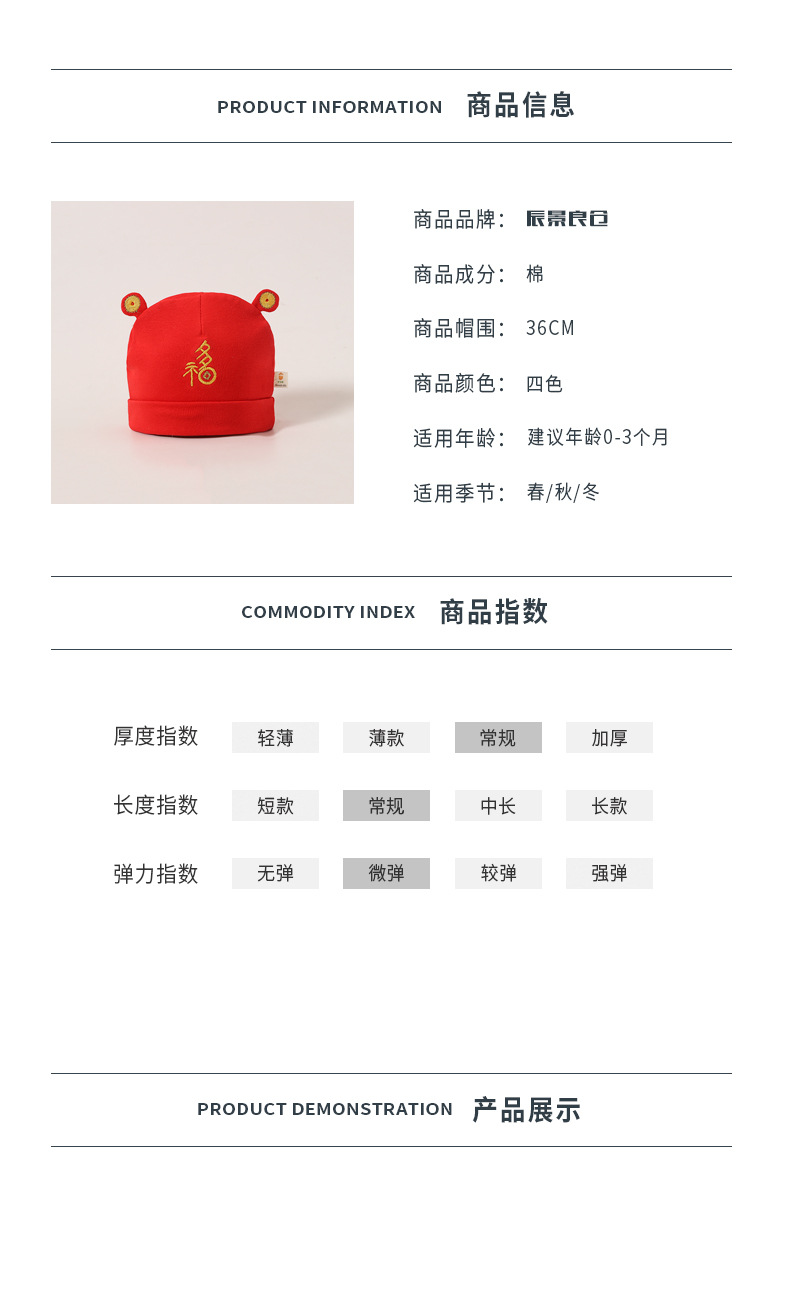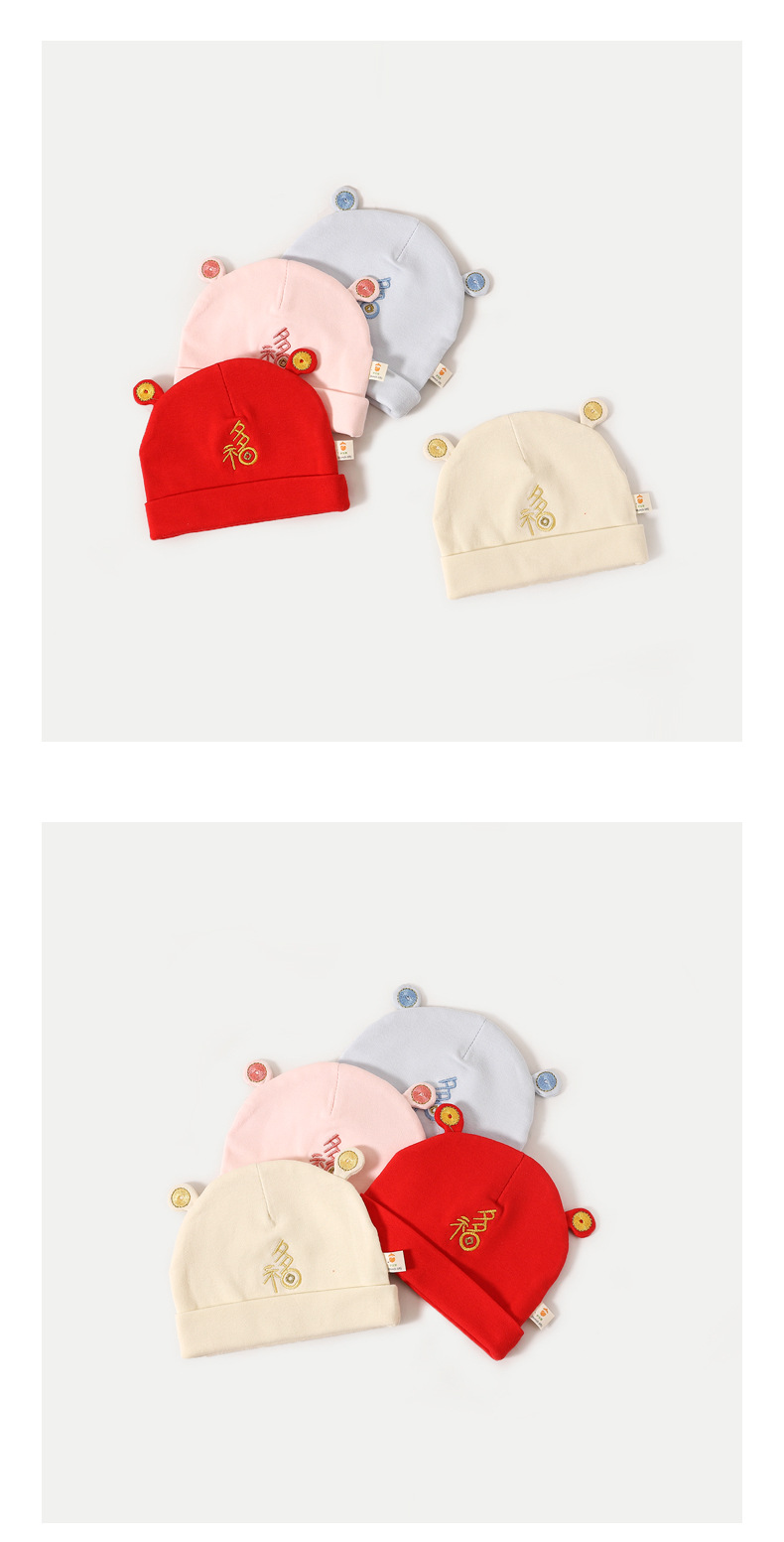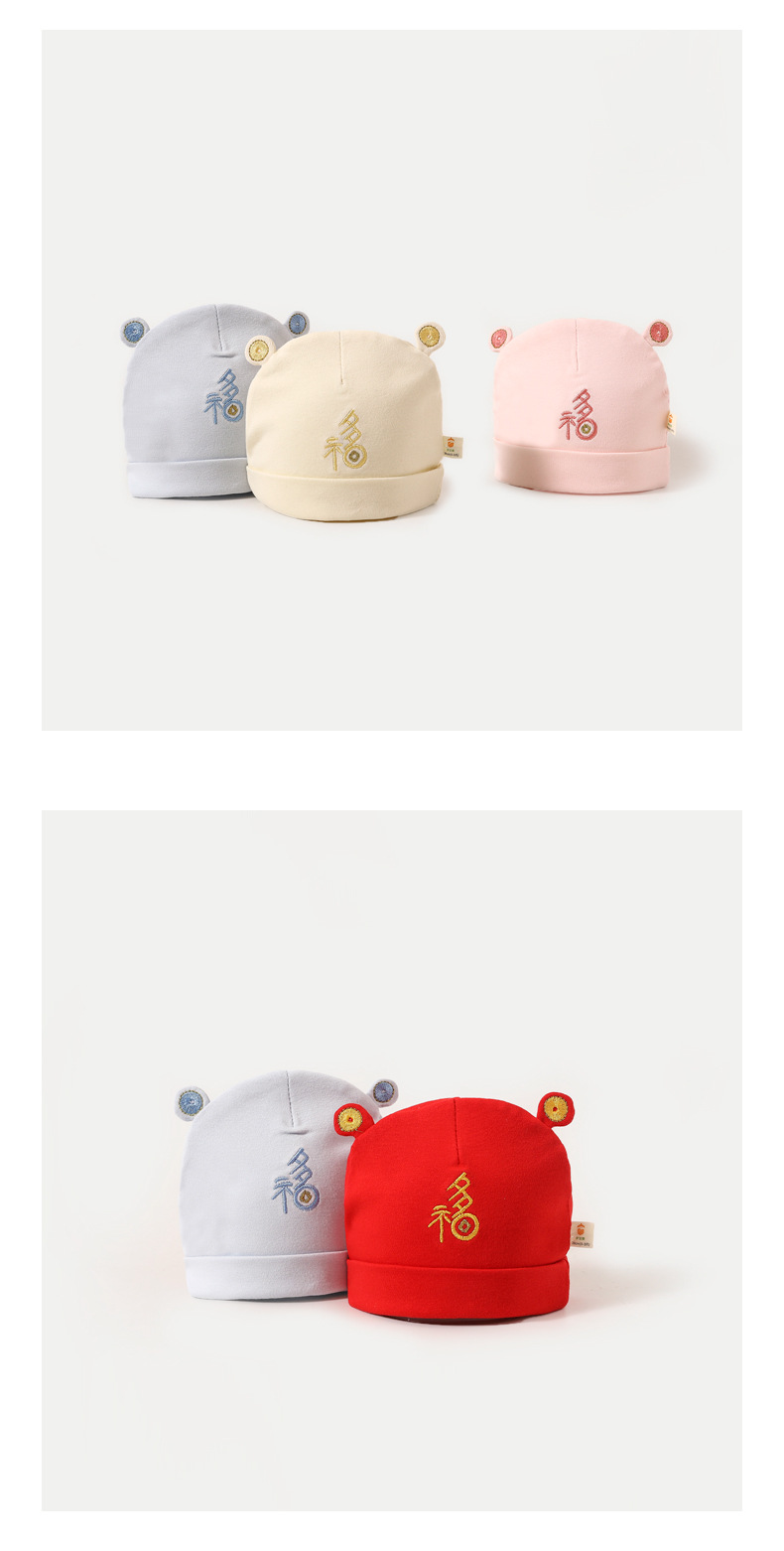 婴儿帽子秋冬 中国风纯棉金丝福字新生儿胎帽国潮喜庆宝宝帽子0-3岁
