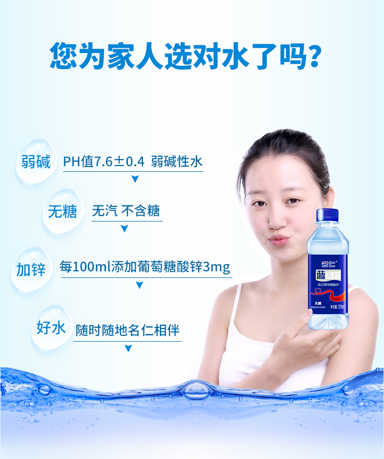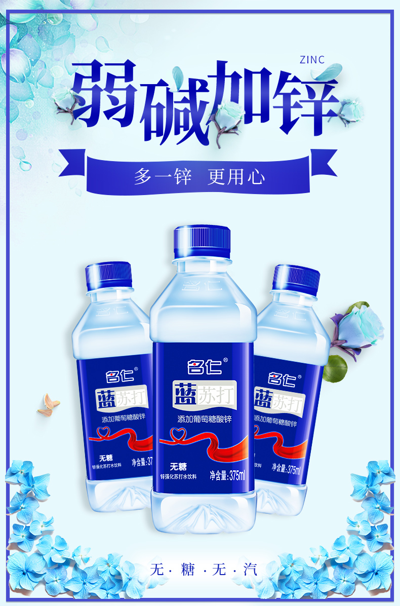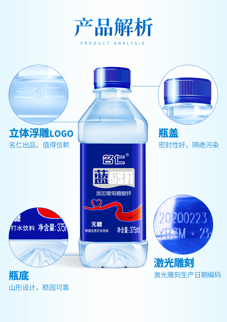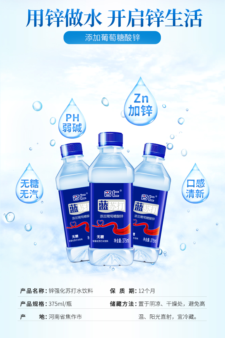 名仁苏打水饮料375ml*24瓶【科学添加葡萄糖酸锌】蓝苏打限区包邮