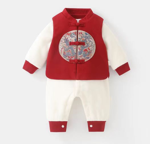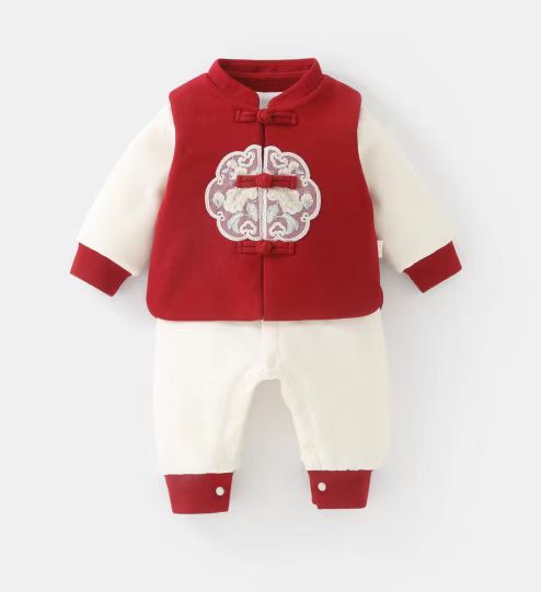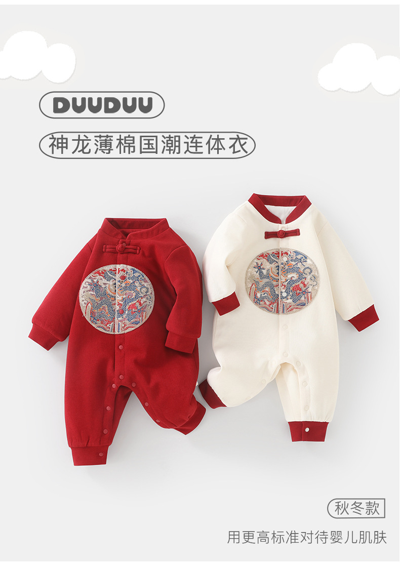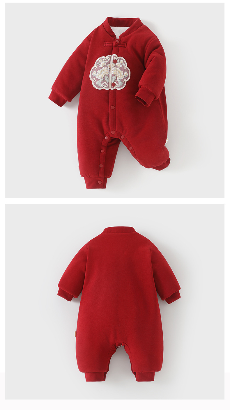 DUUDUU新年满月宝宝保暖连体衣冬季a类新中式拜年婴儿过年衣服