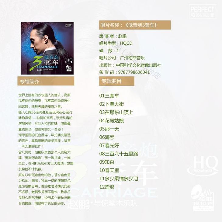 柏菲正品 经典发烧男声 男低音 赵鹏 《低音炮三套车》纯银CD