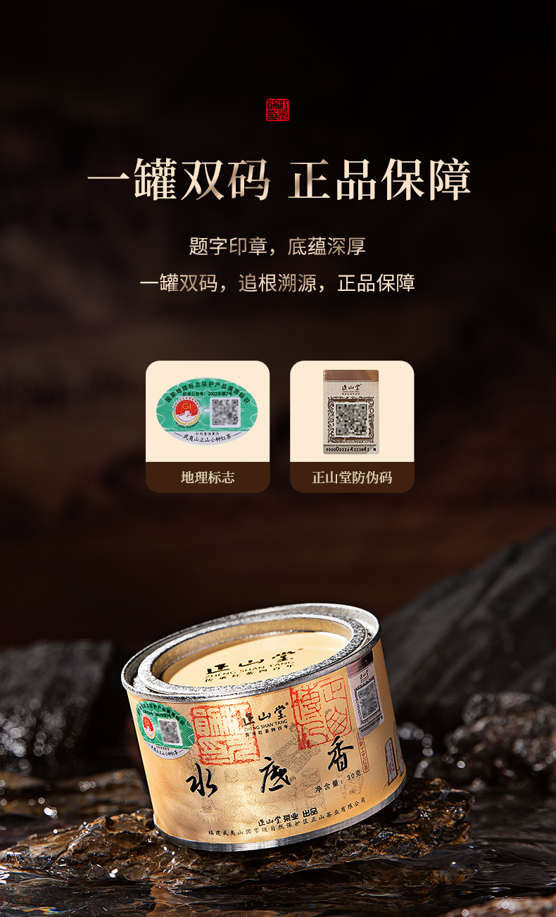 正山堂 水底香 红茶正山小种红茶特级武夷红茶叶罐装30g/90g/礼盒180g