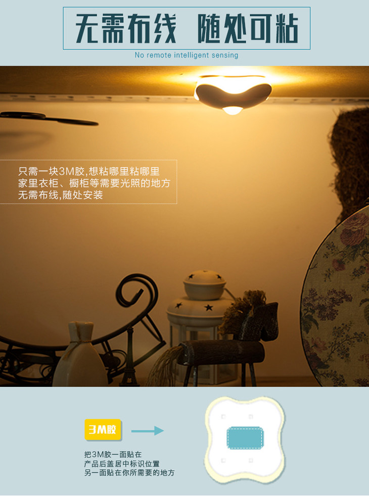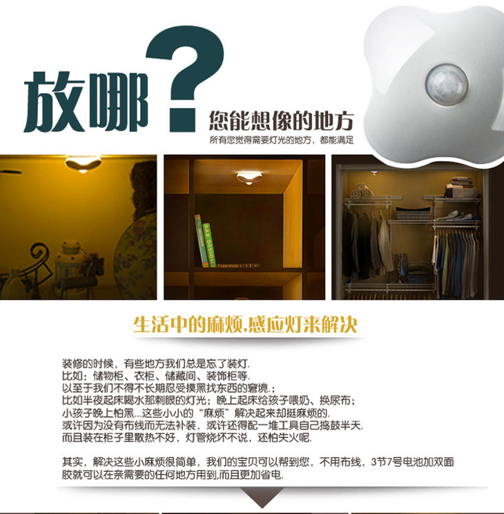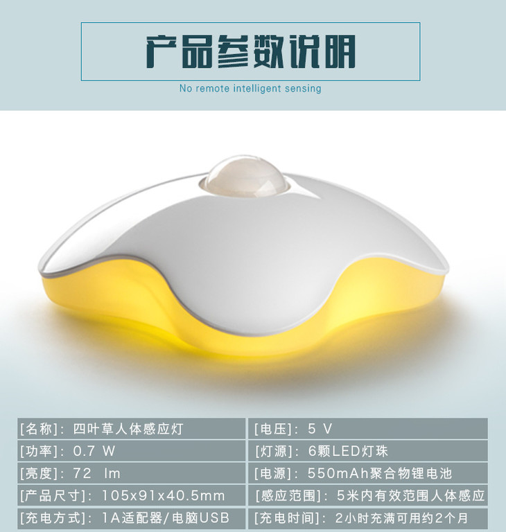 【为思礼 Datouren】四叶草 人体光线双感应小夜灯 USB充电升级版 创意时尚潮流家居
